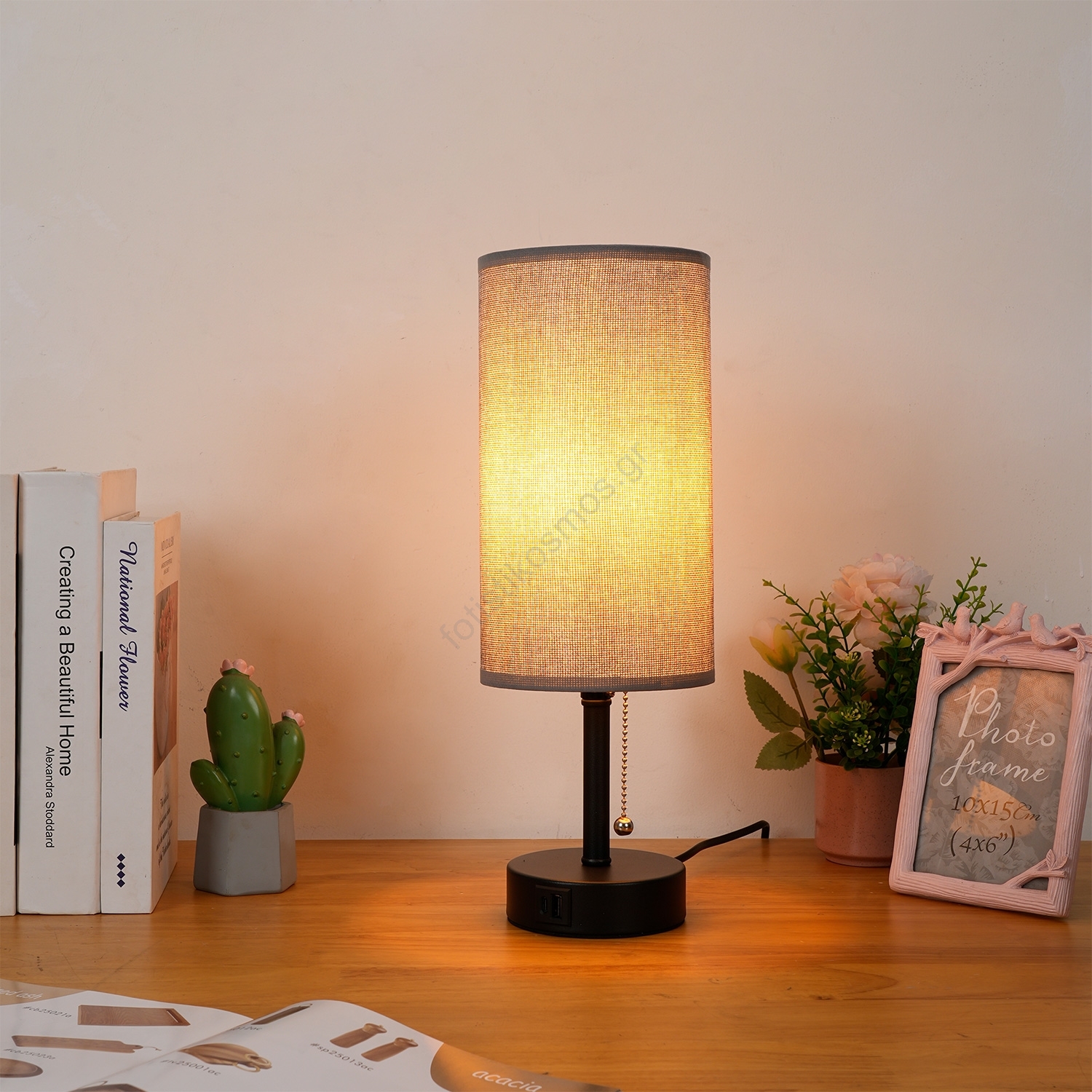 • Brilagi - Επιτραπέζιο φωτιστικό TABLON με θύρα USB, 1xE27/25W/230V, μπεζ