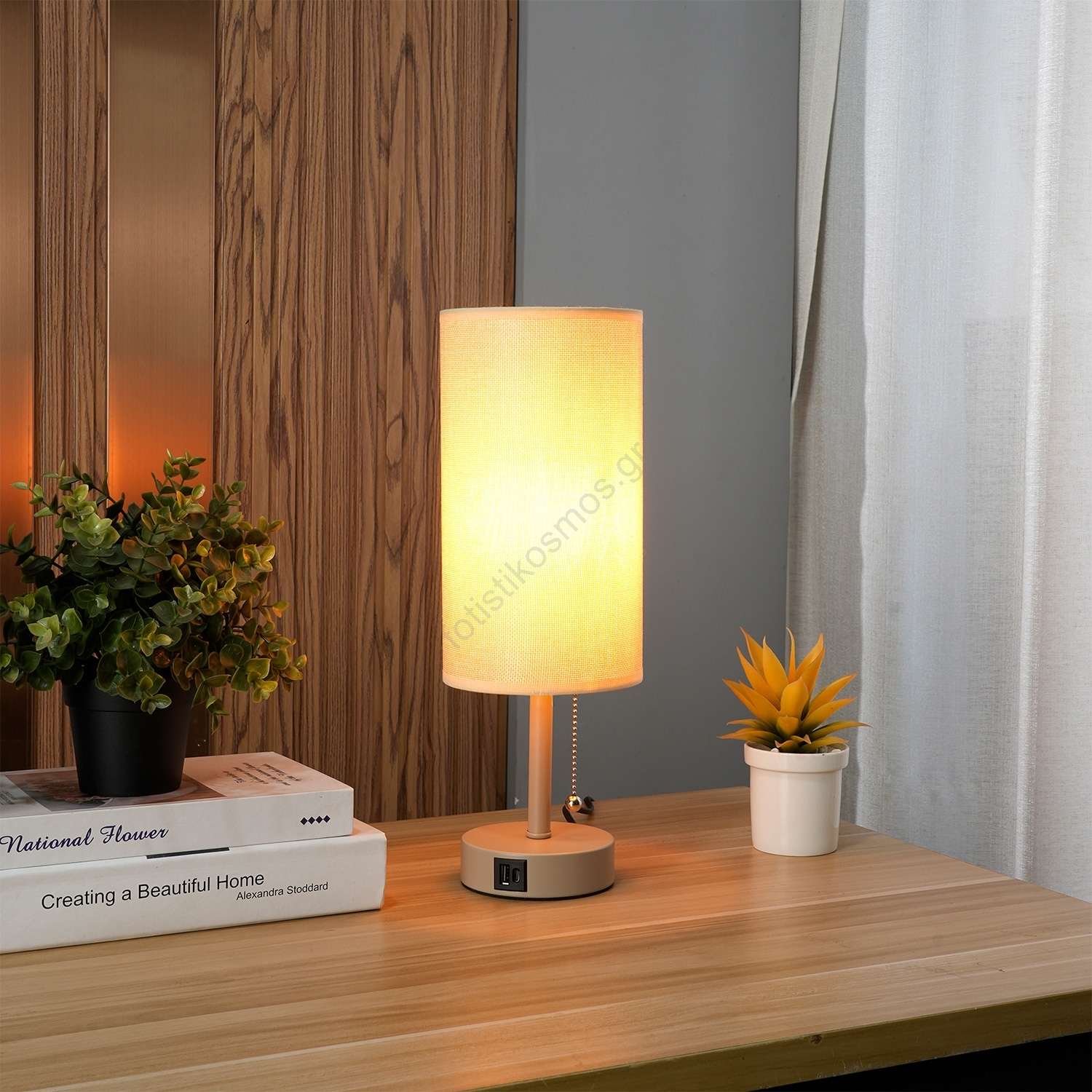 • Brilagi - Επιτραπέζιο φωτιστικό με θύρα USB TABLON 1xE27/25W/230V λευκό/κρεμ