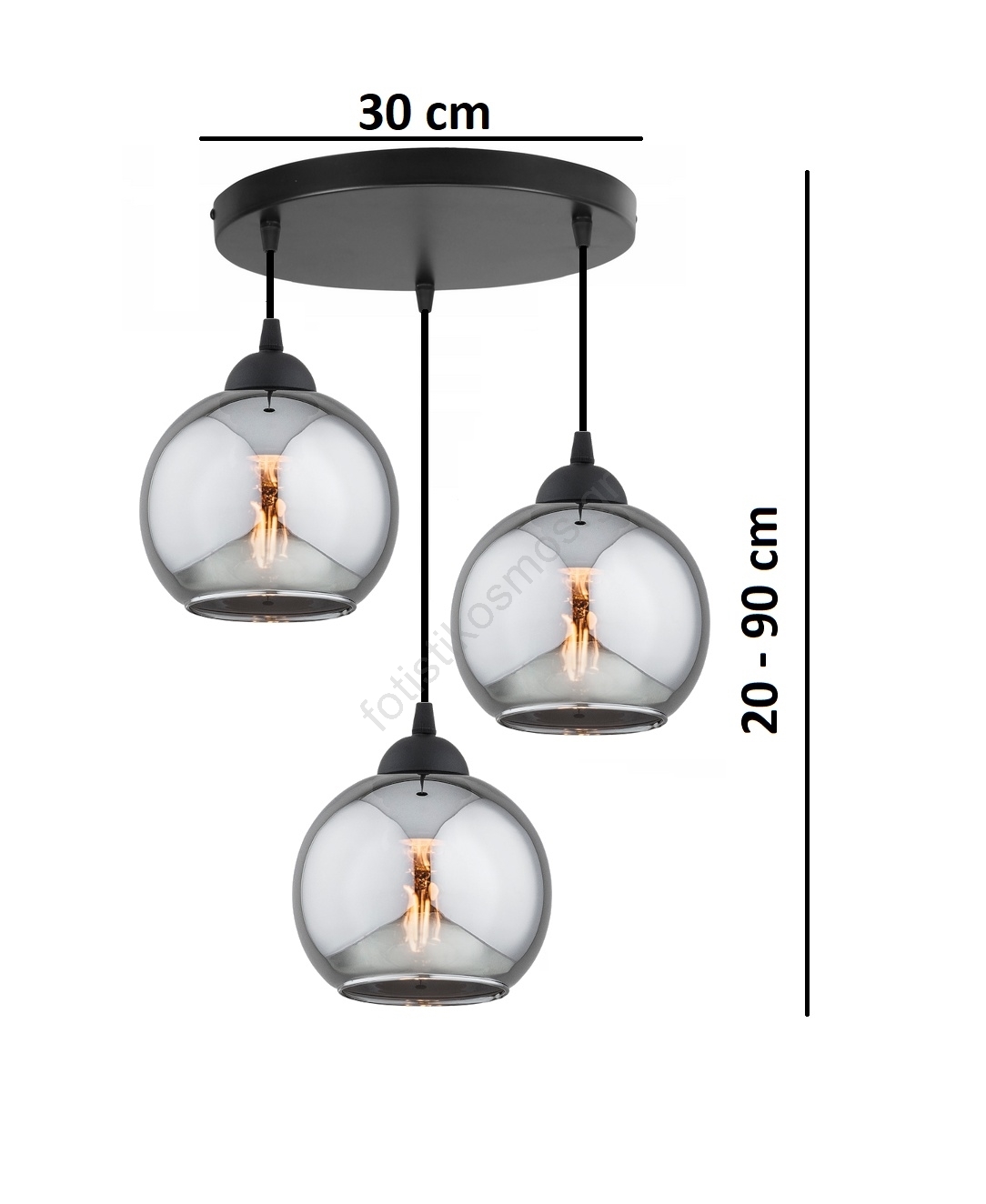 Brilagi - Κρεμαστό φωτιστικό με καλώδιο DIOR 3xE27/60W/230V μαύρο/καπνιστό γκρι