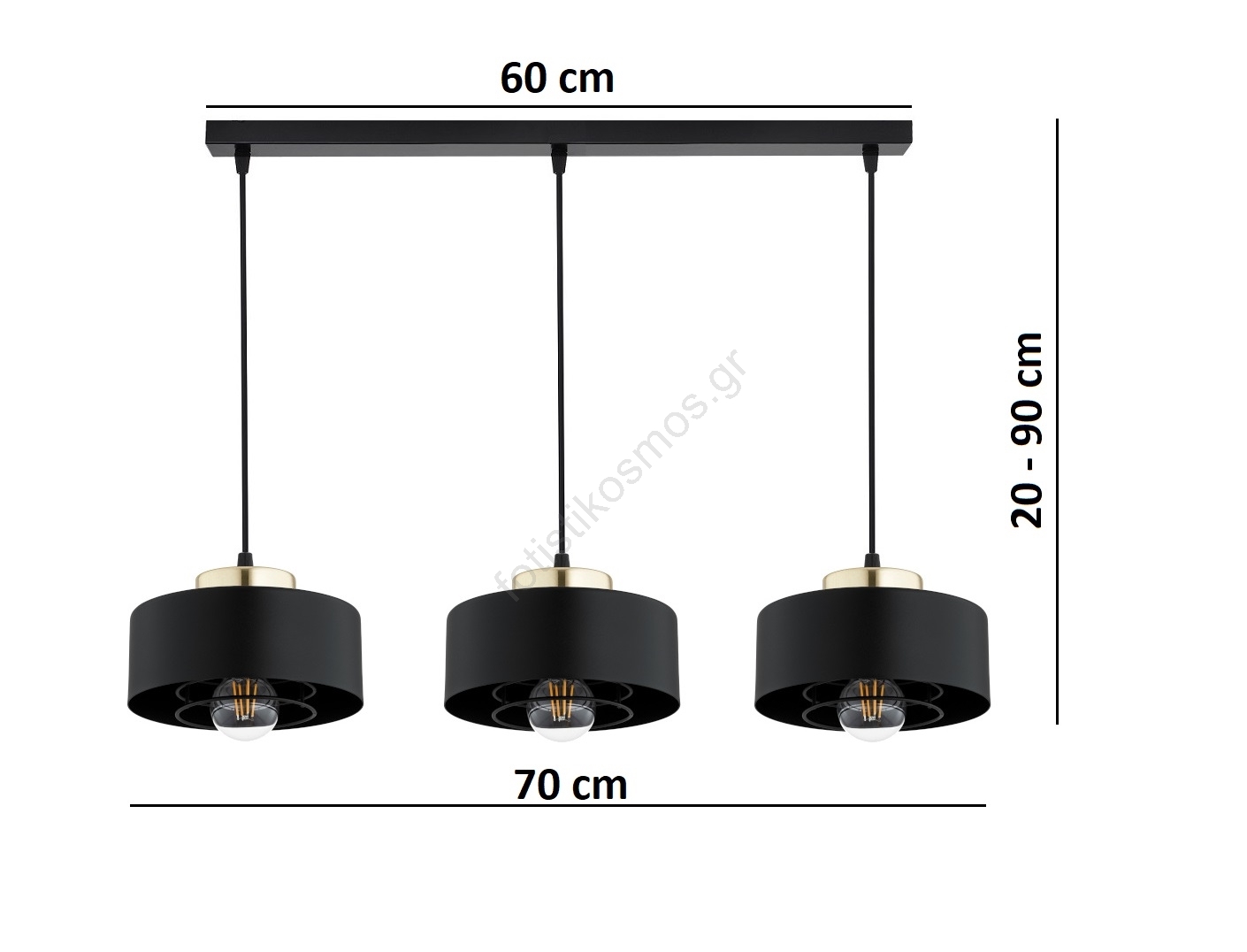 • Brilagi - Κρεμαστό φωτιστικό με καλώδιο 3xE27/60W/230V μαύρο/χρυσό