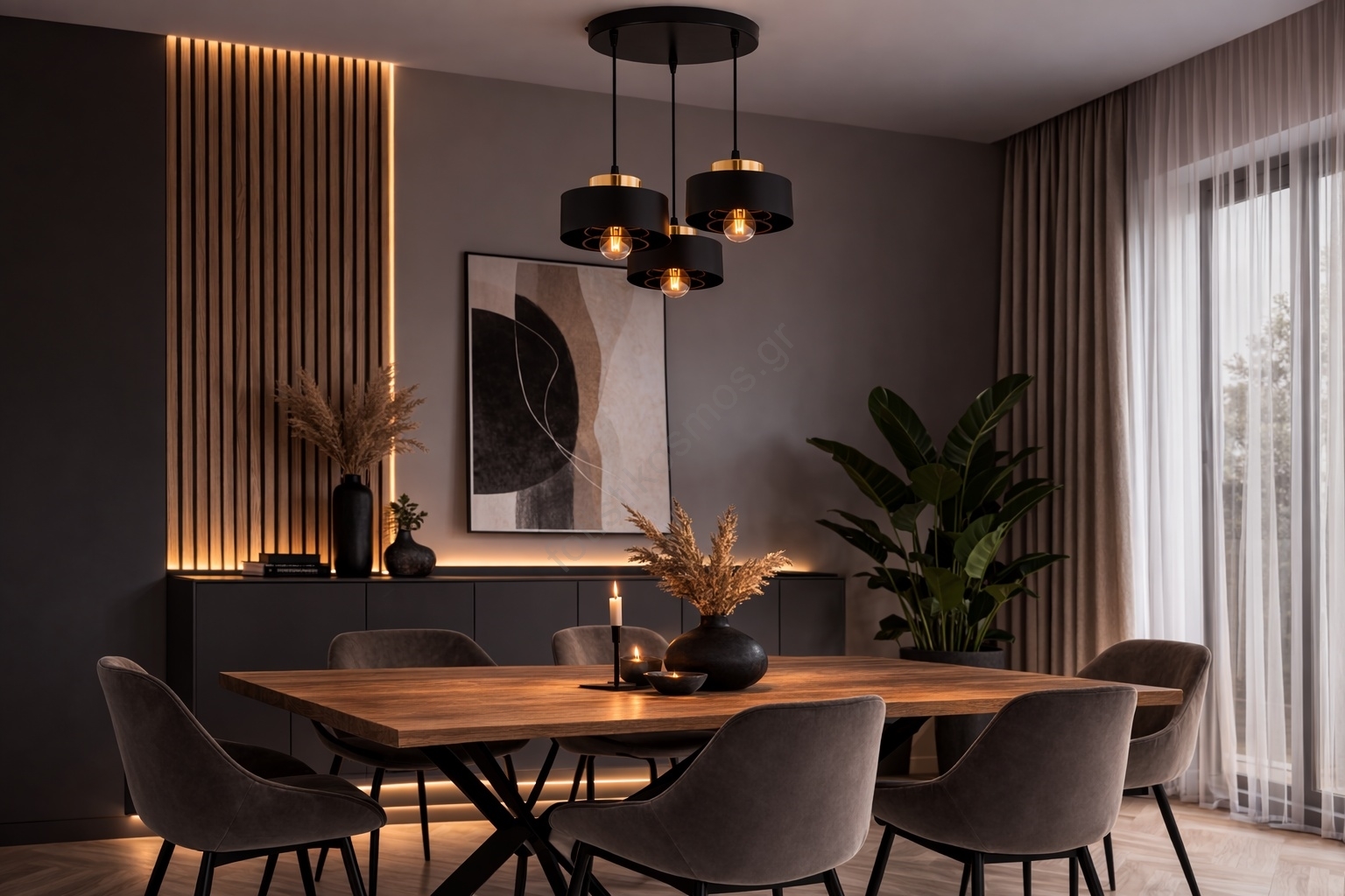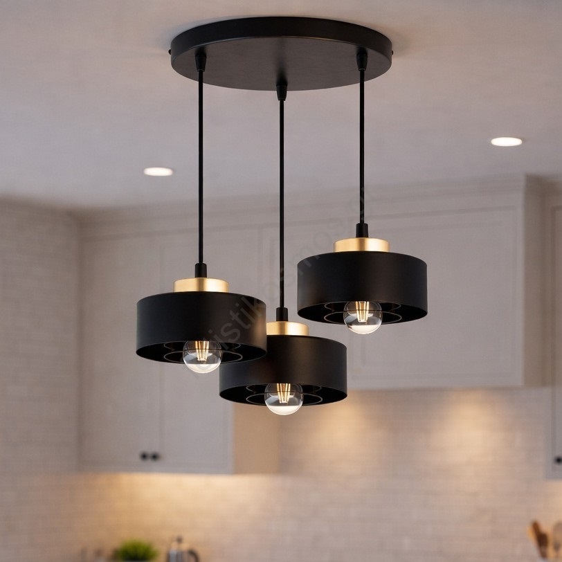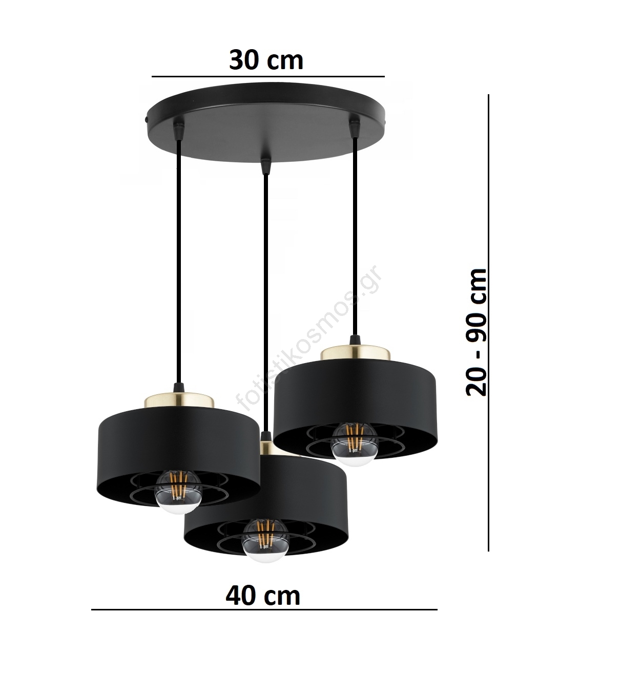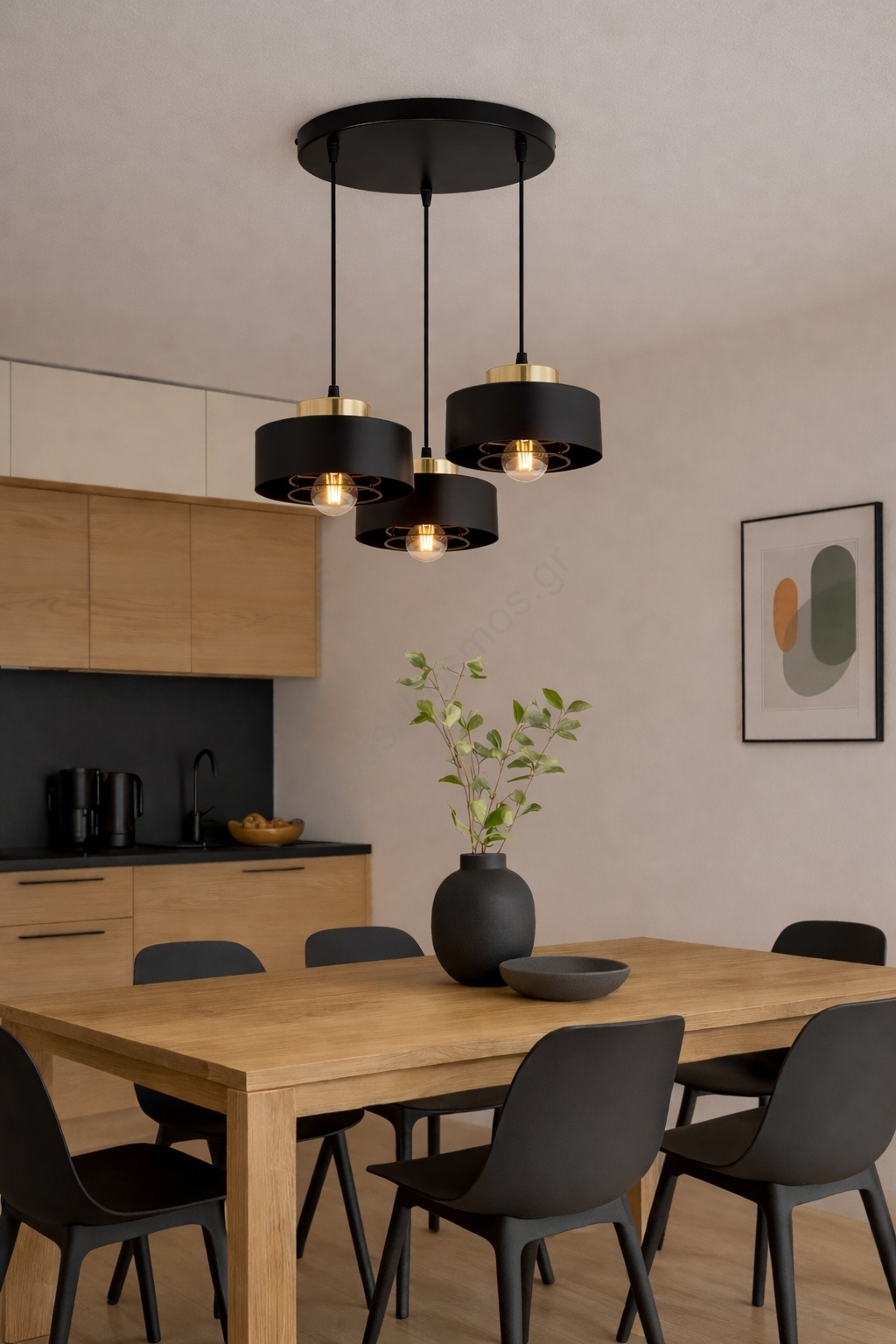 • Brilagi - Κρεμαστό φωτιστικό με καλώδιο 3xE27/60W/230V μαύρο/χρυσό