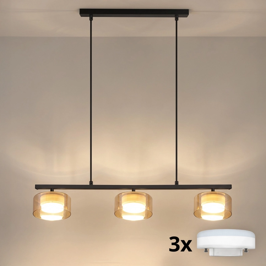 Brilagi - LED Κρεμαστό φωτιστικό με καλώδιο AURA LUX 3xGX53/30W/230V μαύρο/χρυσό