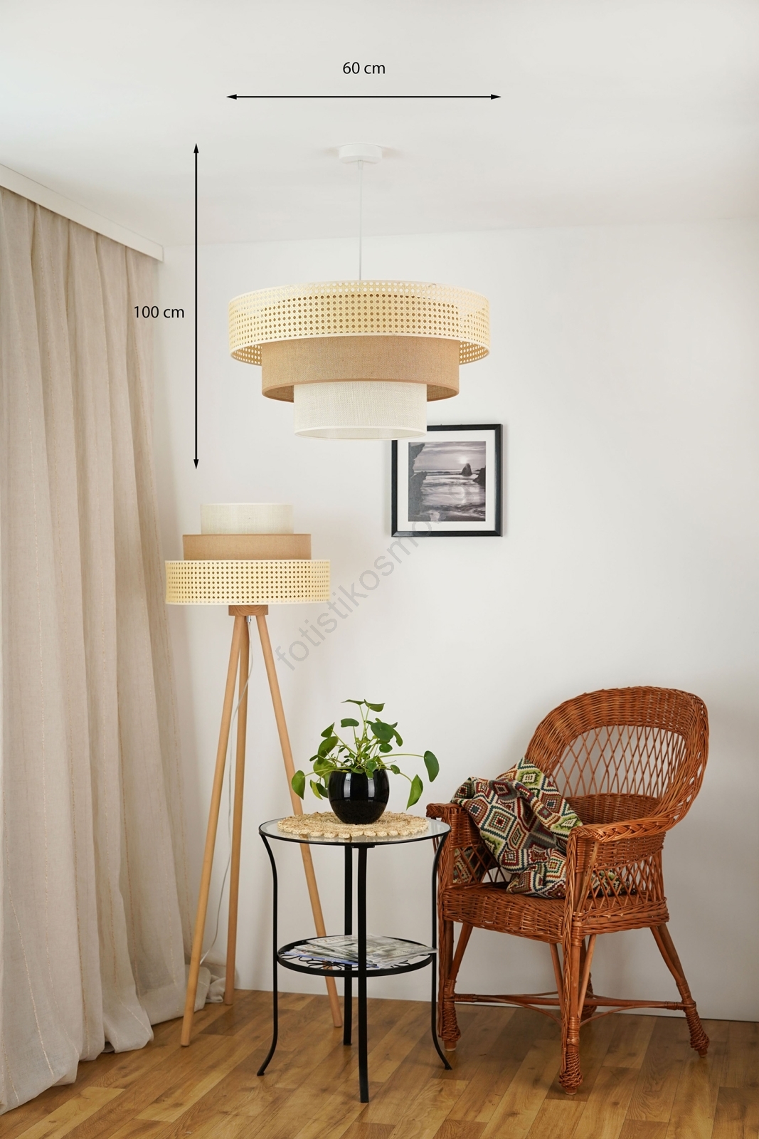 Brilagi - Φωτιστικό οροφής με καλώδιο CEDAR LUNETA 1xE27/15W/230V διάμ. 60 εκ. ρατάν/καφέ/κρεμ