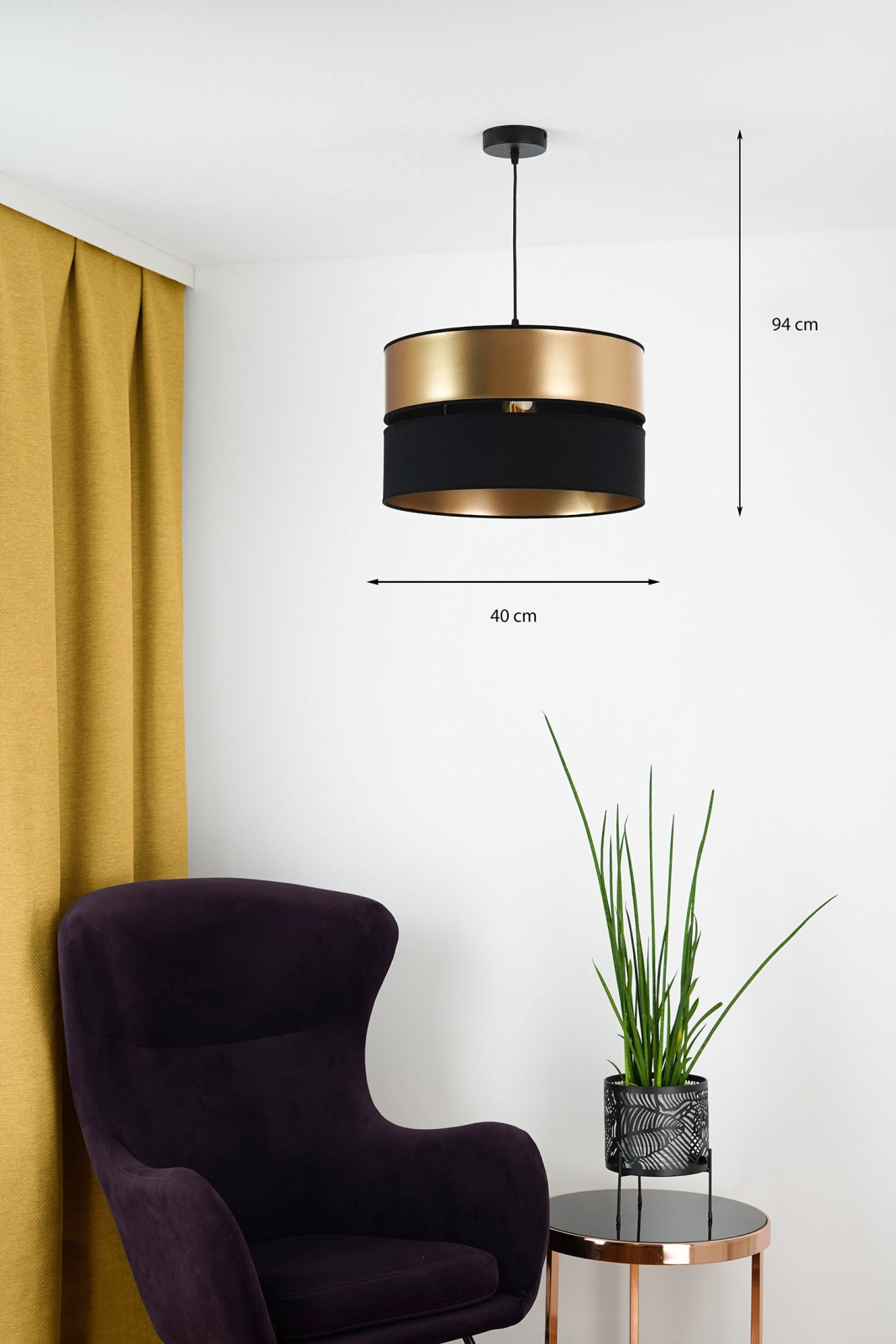 Brilagi - Κρεμαστό φωτιστικό οροφής ROYAL 1xE27/15W/230V διάμετρος 40 cm μαύρο/χρυσό