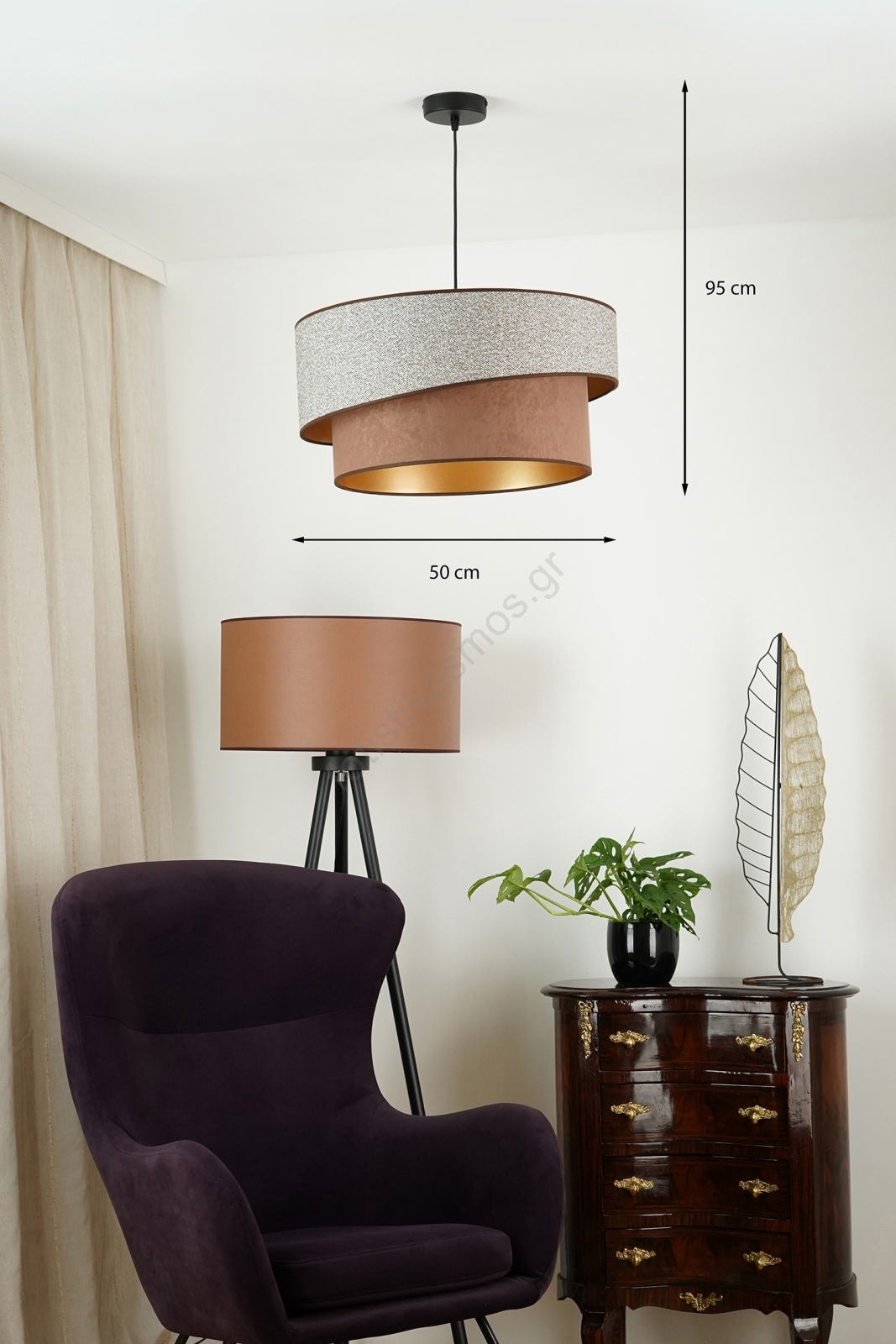 Brilagi - Κρεμαστό φωτιστικό οροφής VEGAS SHINE 1xE27/15W/230V διάμετρος 50 cm γκρι/καφέ | Fotisti k