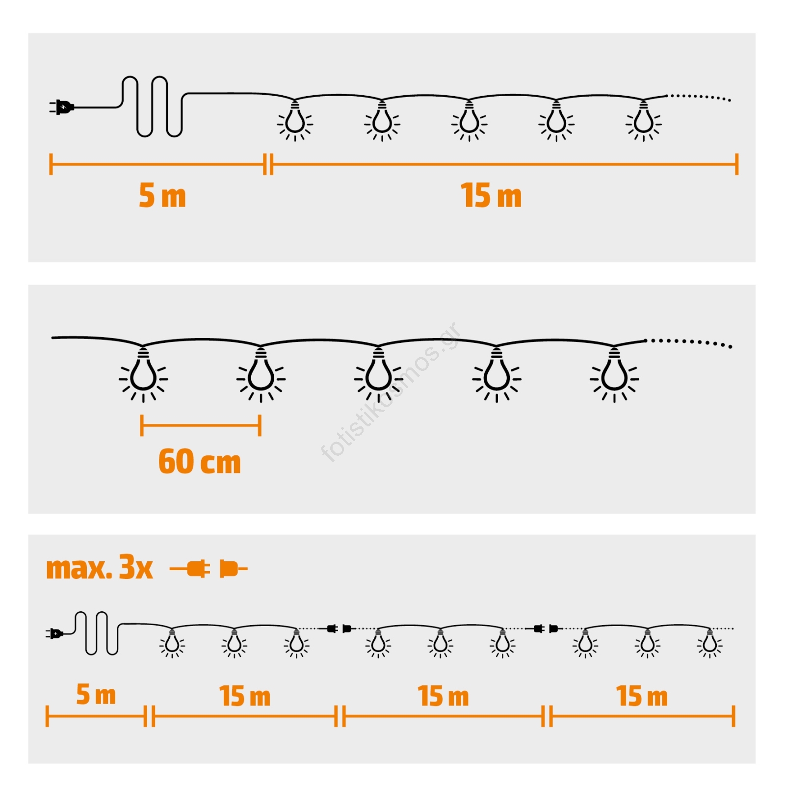 Brilagi - LED εξωτερική γιρλάντα 25xE12 20μ μαύρη IP44 θερμό λευκό | Fotisti kosmos