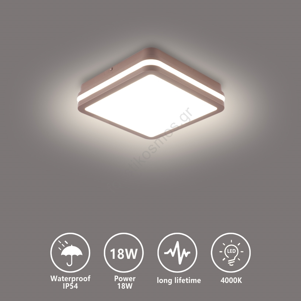 Brilagi - Εξωτερικό φωτιστικό οροφής LED BENE LED/18W/230V 21,5x21,5 cm καφέ IP54