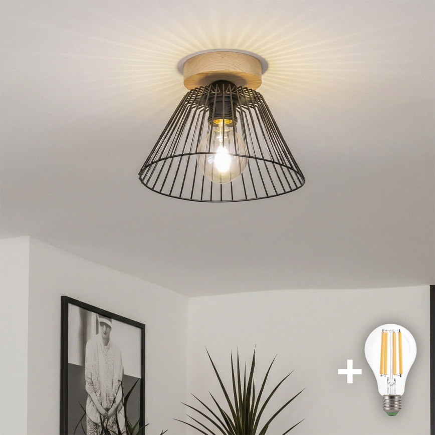 Brilagi - LED Επιφανειακό φωτιστικό οροφής CERIA WIRE 1xE27/40W/230V Ø 21 εκ. μαύρο/δρυς