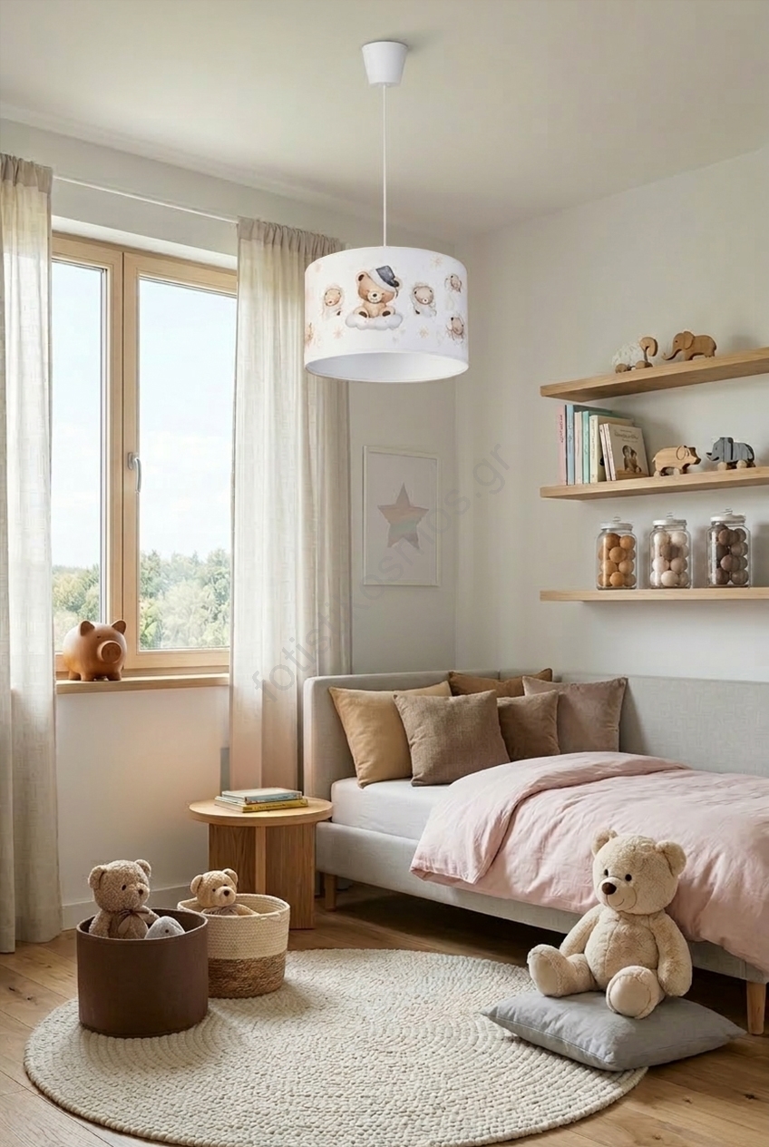 • Brilagi - LED Παιδικό κρεμαστό φωτιστικό με καλώδιο BOBO 1xE27/10W/230V διάμ. 35 εκ. λευκό/αρκουδάκια