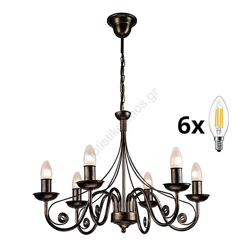 Brilagi - LED Πολύφωτο με αλυσίδα STEFANO 6xE14/40W/230V μαύρη πατίνα | Fotisti kosmos