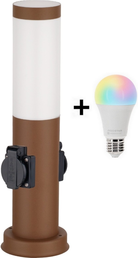 • Brilagi - LED RGBW ρυθμιζόμενο εξωτερικό φωτιστικό με 2 πρίζες, 1x ντουί E27/15W/230V 2700-6500K IP44 40 cm καφέ