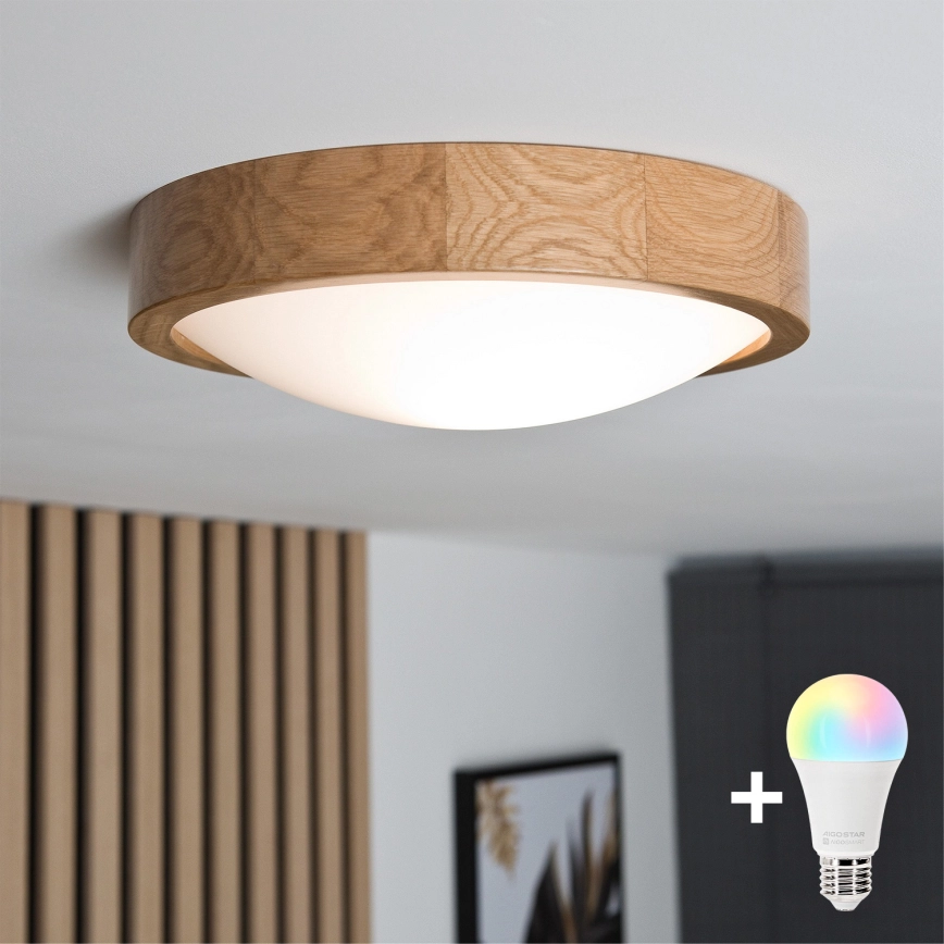 Brilagi - LED RGBW Ρυθμιζόμενο φωτιστικό οροφής CARVALHO SLIM 1xE27/15W/230V 2700-6500K Wi-Fi, φινίρισμα δρυός, διάμ. 27 εκ.