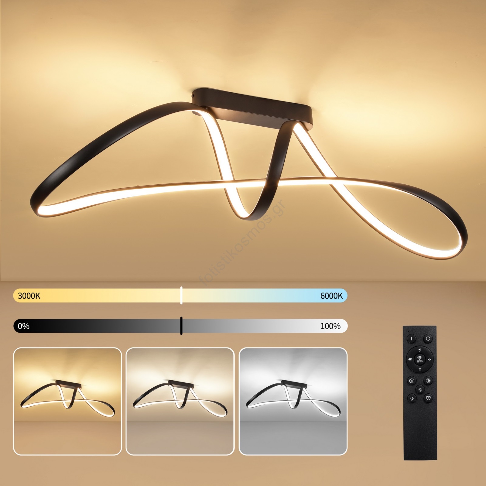 • Brilagi - Ρυθμιζόμενο LED επιφανειακό φωτιστικό οροφής TWISTER LED/60W/230V 3000-6000K μαύρο + τηλεχειριστήριο