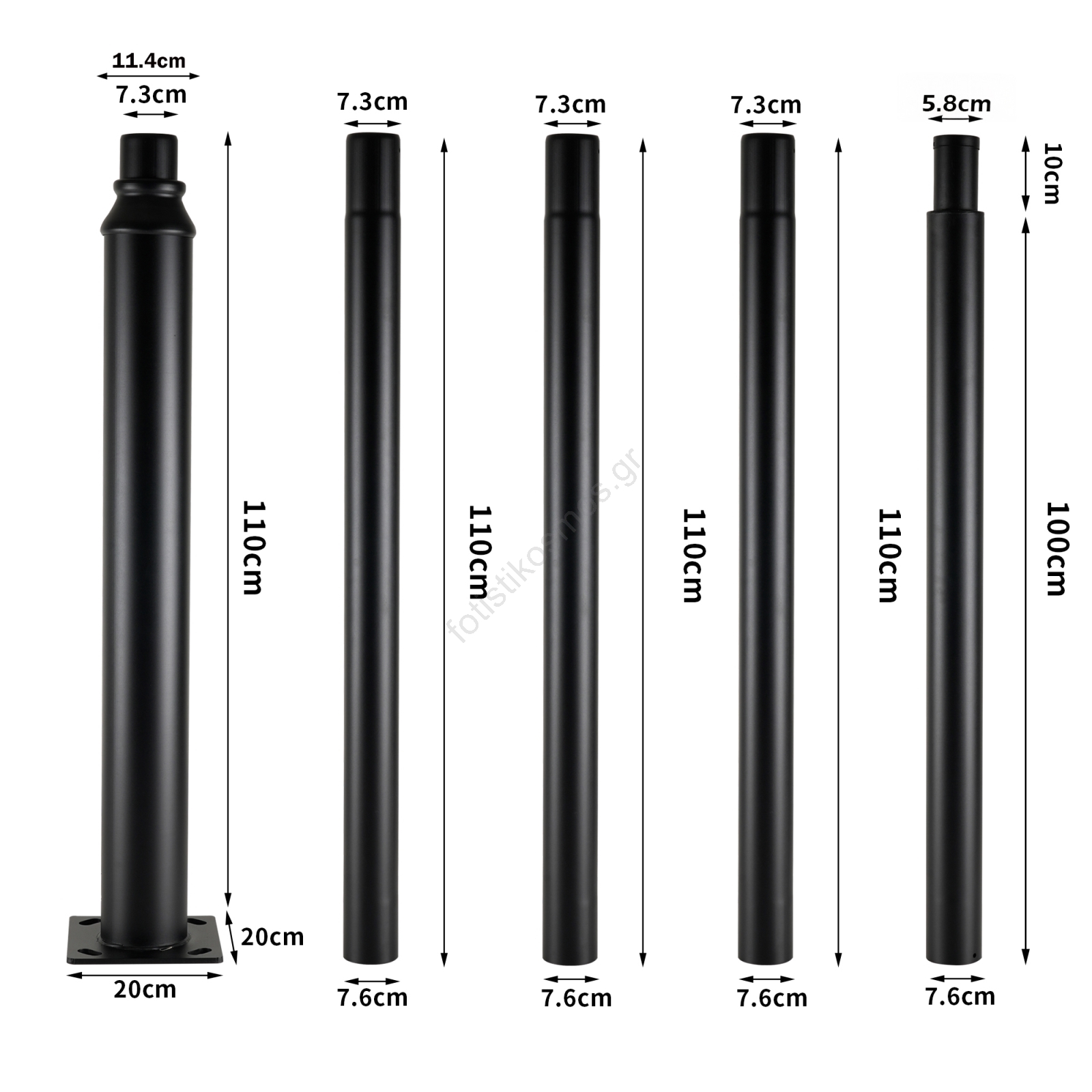Brilagi - Μεταλλικός σωλήνας για στύλο εξωτερικού φωτισμού URBAN, 5 m, διάμ. 58 mm, μαύρος