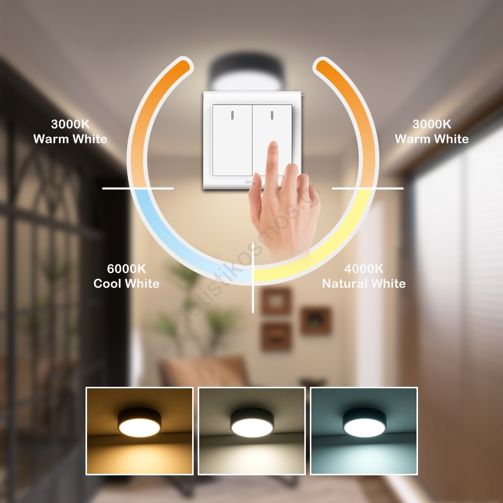 • Βηματική αλλαγή της θερμοκρασίας χρώματος με ένα απλό πάτημα του τοιχοδιακόπτη.