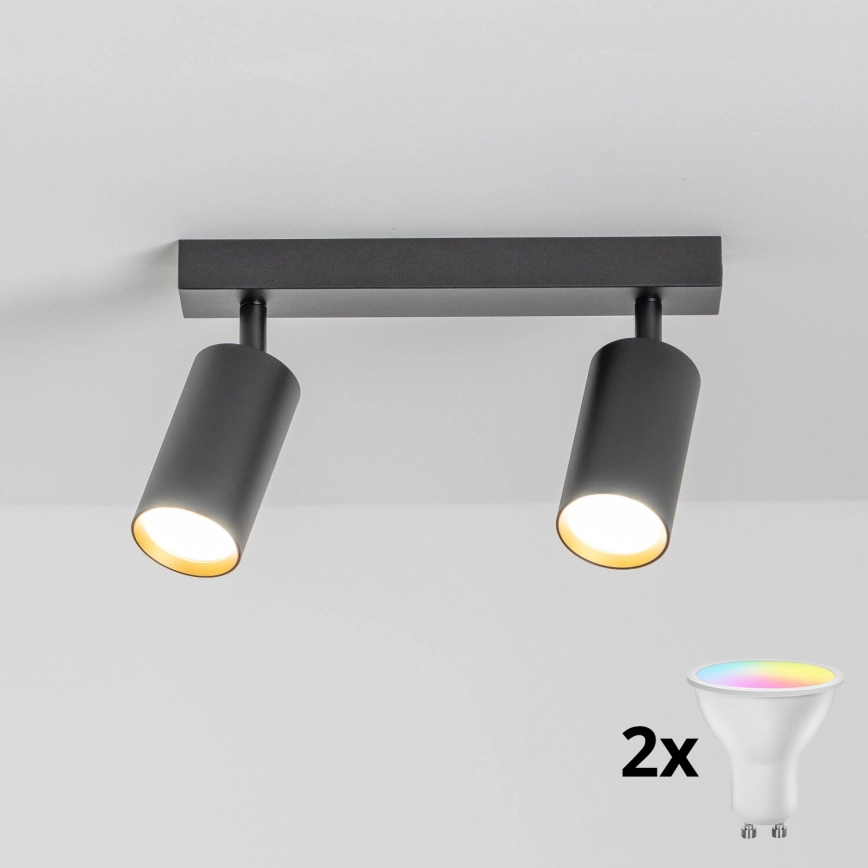 • Brilagi - LED RGBW ρυθμιζόμενο σποτ φωτιστικό SELE MODERN 2xGU10/6W/230V 3000K μαύρο + τηλεχειριστήριο