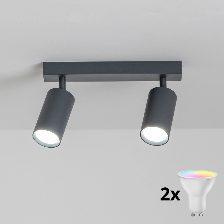 • Brilagi - LED RGBW ρυθμιζόμενο σποτ φωτιστικό SELE MODERN 2xGU10/4,8W/230V 3000K μαύρο + τηλεχειριστήριο