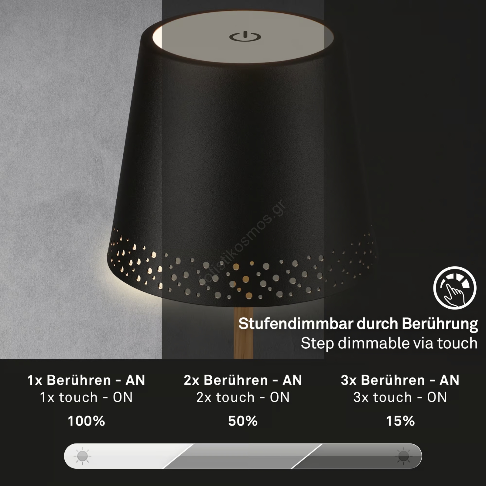 • Brilo - LED ρυθμιζόμενη, επαναφορτιζόμενη, επιτραπέζια λάμπα εξωτερικού χώρου αφής KIKI, LED/2,6W/5V, IP44, 2600 mAh, μαύρη
