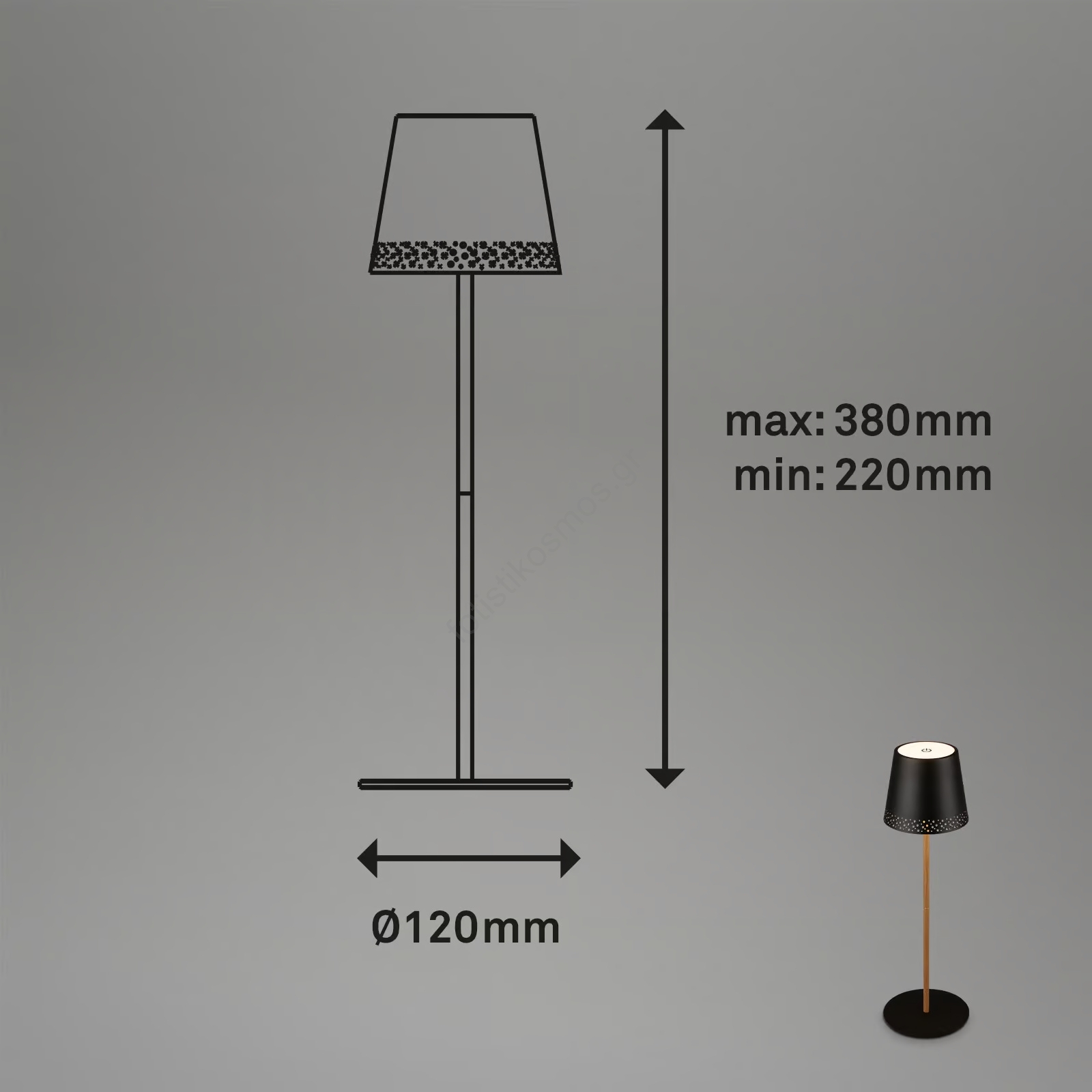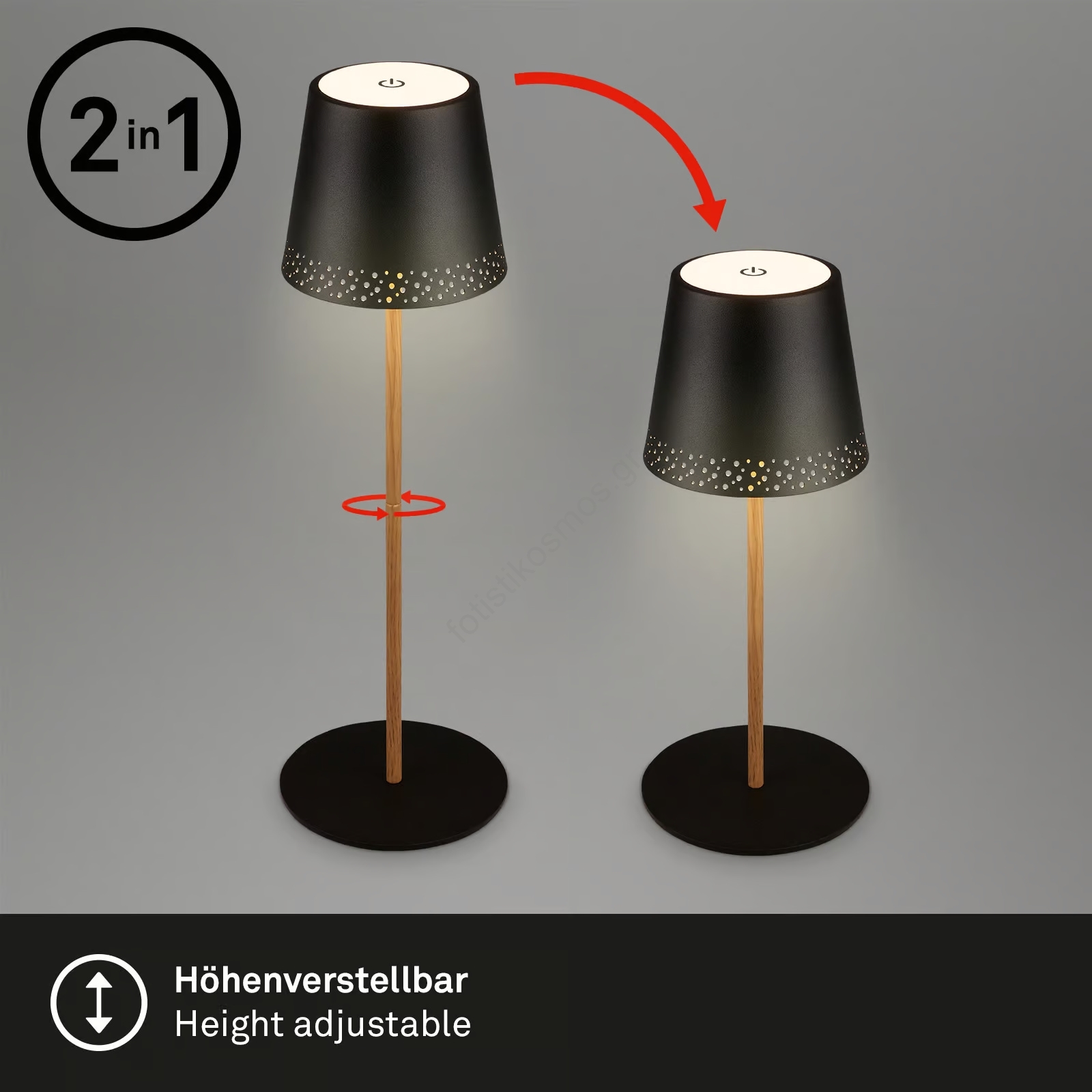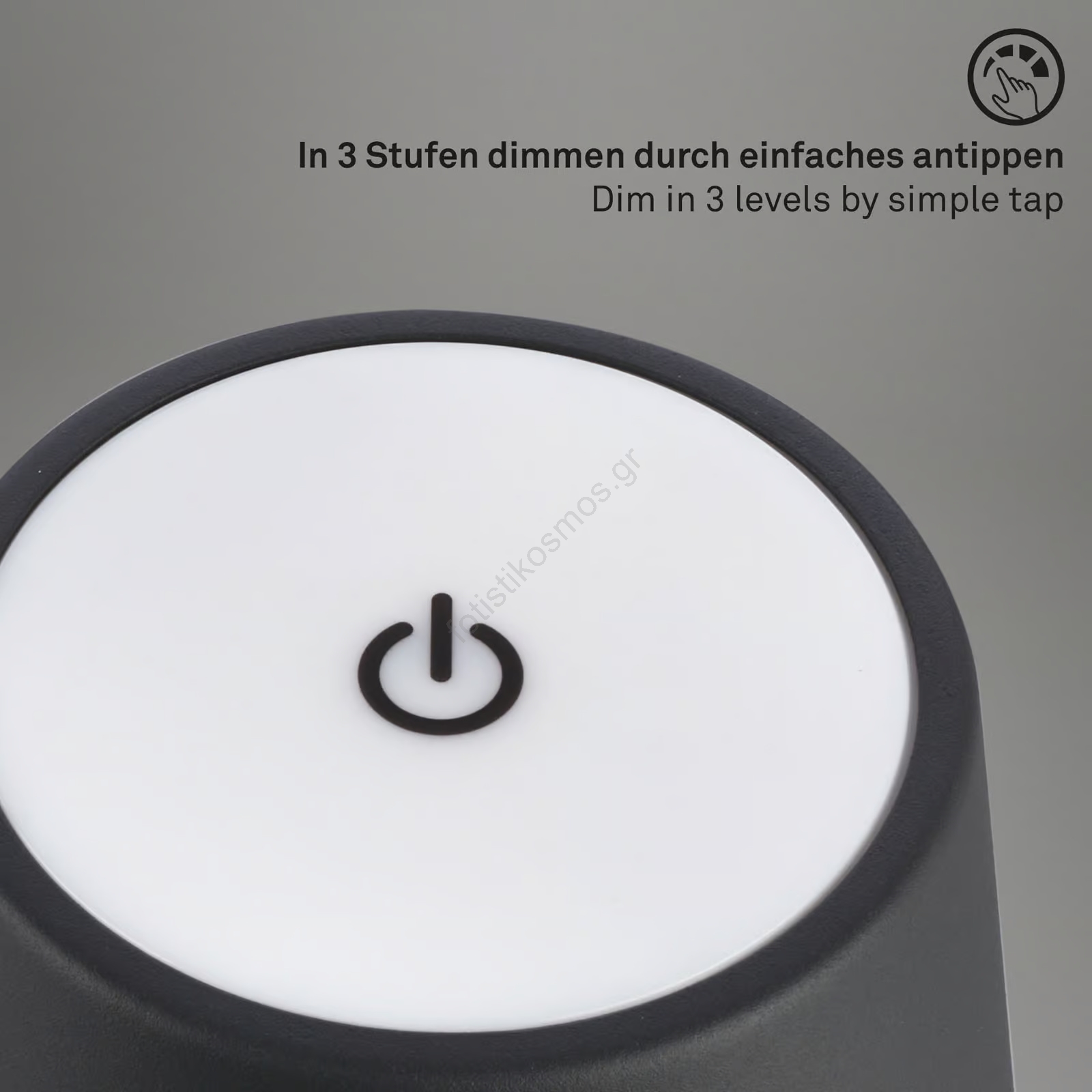 Brilo - LED ρυθμιζόμενη, επαναφορτιζόμενη, επιτραπέζια λάμπα εξωτερικού χώρου αφής KIKI, LED/2,6W/5V, IP44, 2600 mAh, μαύρη