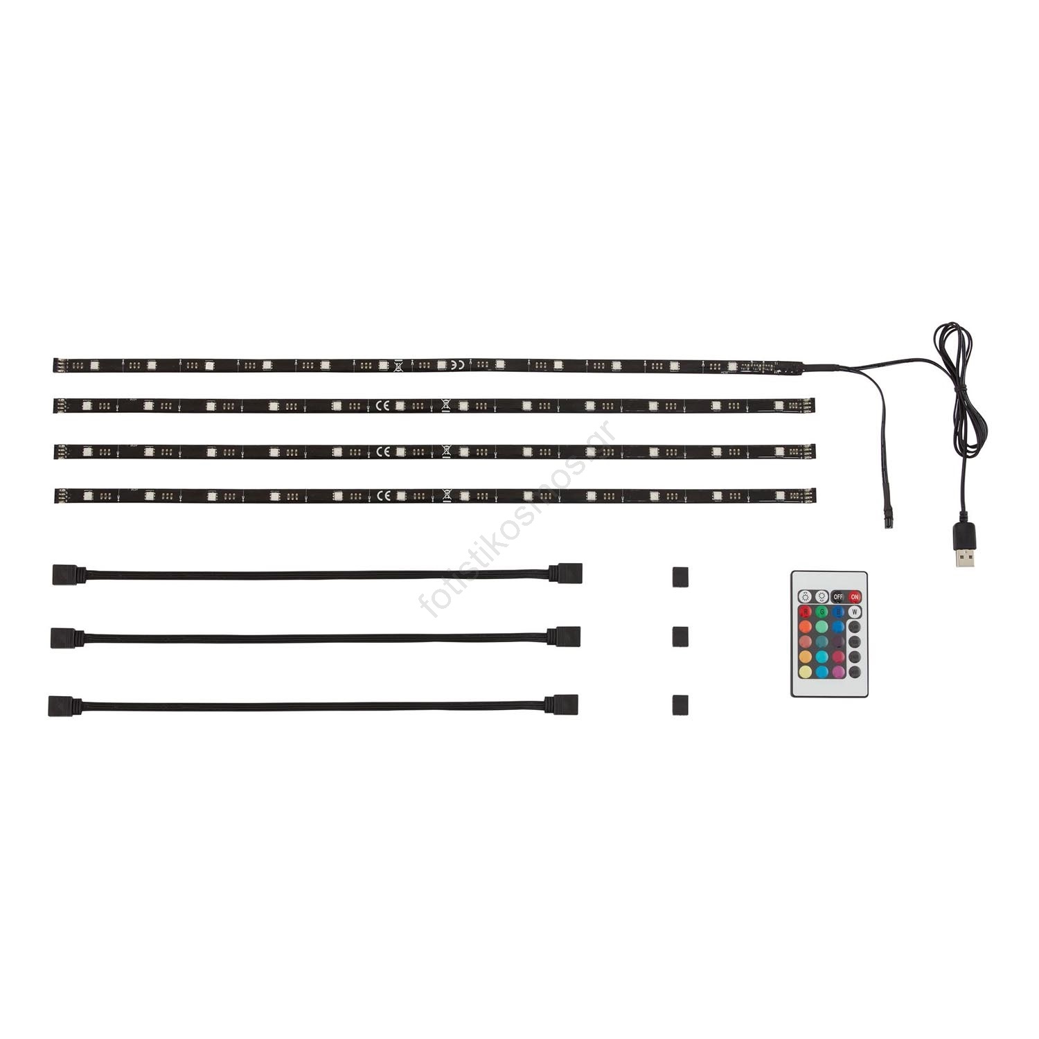 • Στη συσκευασία περιλαμβάνονται τηλεχειριστήριο, σύνδεση USB, 3x σύνδεσμος, 3x καλώδιο σύνδεσης.