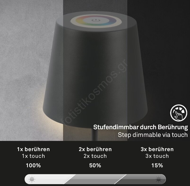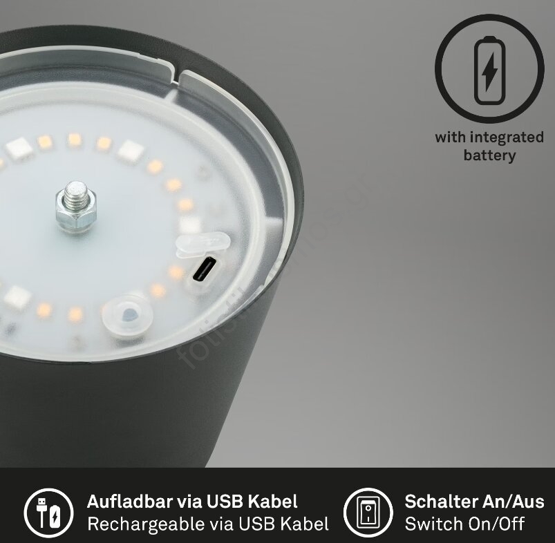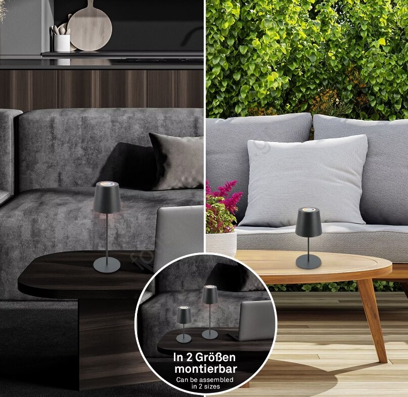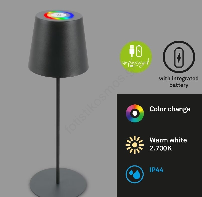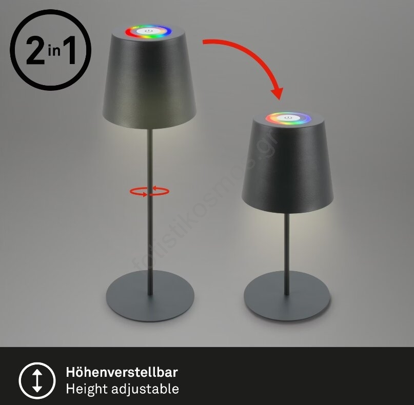 • Briloner 7507015 - LED RGB ρυθμιζόμενη επαναφορτιζόμενη εξωτερική επιτραπέζια λάμπα 2-σε-1 LED/2,5W/5V IP44 1200 mAh ανθρακί