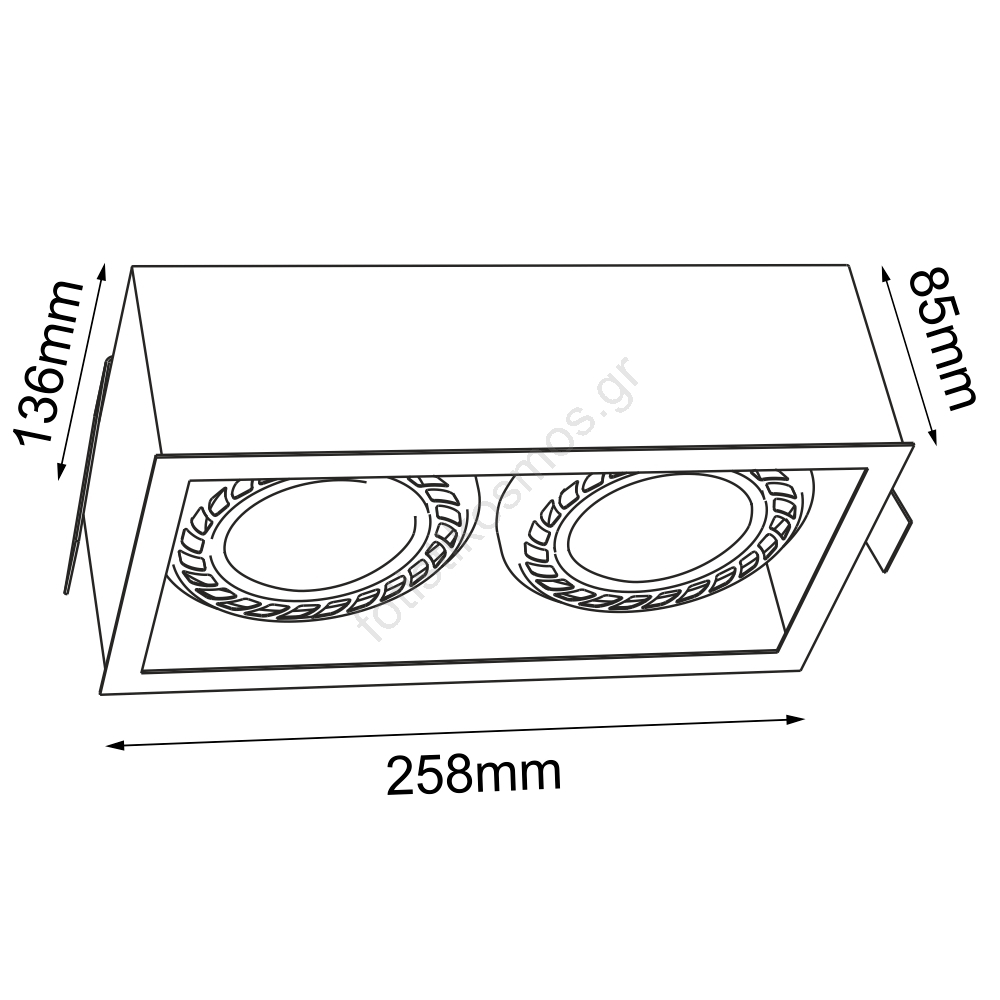 Brosline - Εντοιχισμένο φωτιστικό οροφής 2xGU10/18W/230V λευκό χαρακτηρίζεται από ωραίο και λειτουργικό design.  Μια λάμπα με ντουί GU10 είναι κατάλληλη για το φωτιστικό. Εδώ, μπορείτε να αγοράσετε και άλλους λαμπτήρες σε συμφέρουσες τιμές. Θα αποκτήσετε μια εντυπωσιακή προσθήκη στο σπίτι σας.