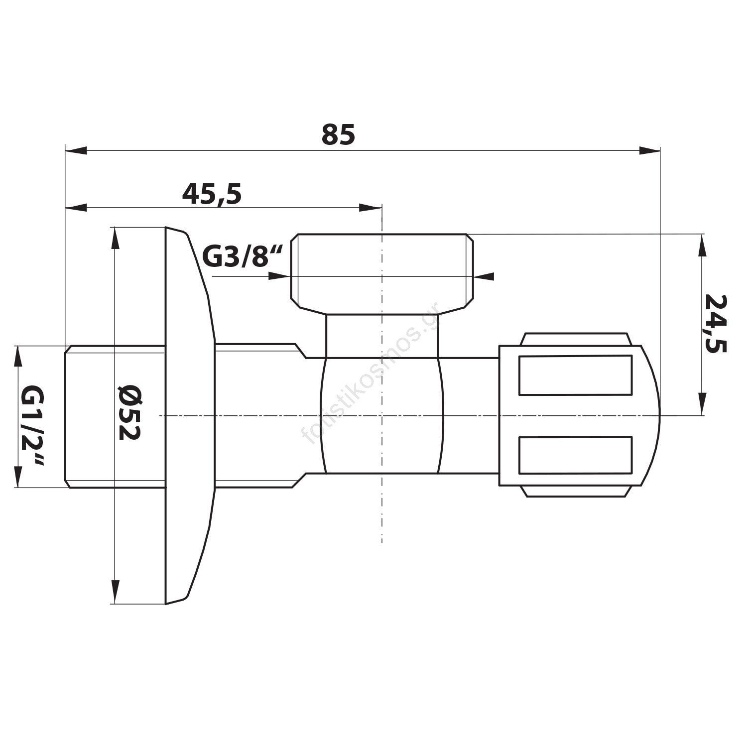 • Γωνιακή βαλβίδα με επιτοίχια ροζέτα.