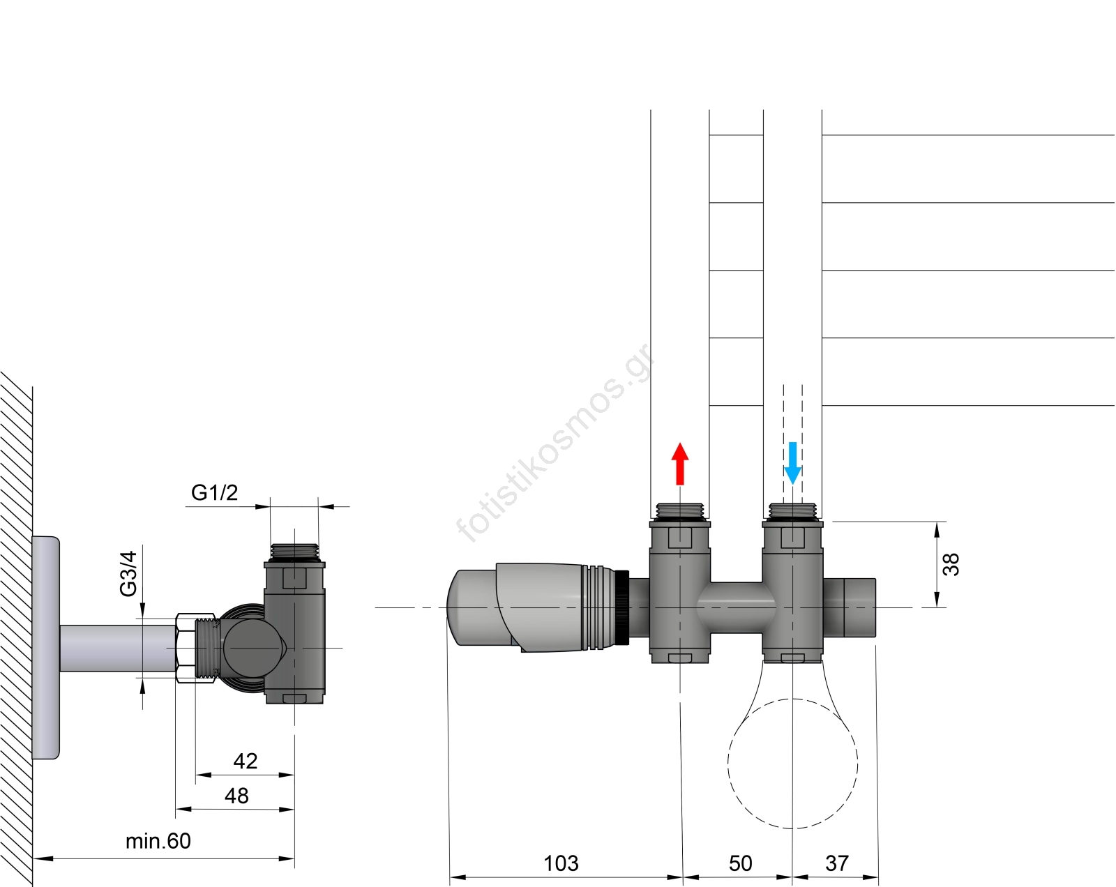 Bruckner - Σετ θερμοστατικοί διακόπτες για κεντρική σύνδεση WICHER COMBI λευκό