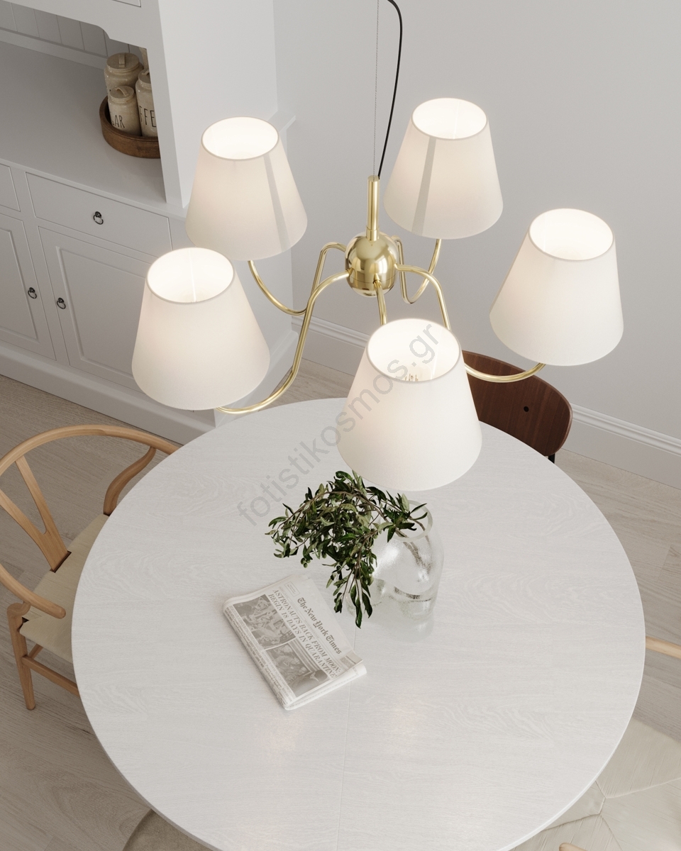 ByRydens - Κρεμαστό φωτιστικό με καλώδιο LYNF 5xE14/8W/230V ορείχαλκος/λευκό