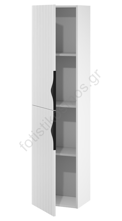 • Η πρόσοψη, το σώμα και τα εσωτερικά ράφια είναι κατασκευασμένα από μοριοσανίδα 16 mm με λευκό βερνίκι.