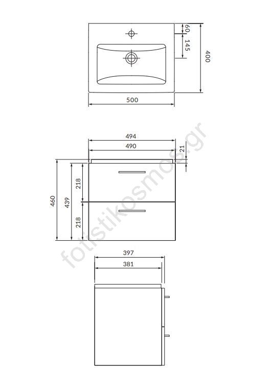 • Ο κεραμικός νιπτήρας έχει κλασικό ορθογώνιο σχήμα με οπή για τη βρύση και υπερχείλιση.