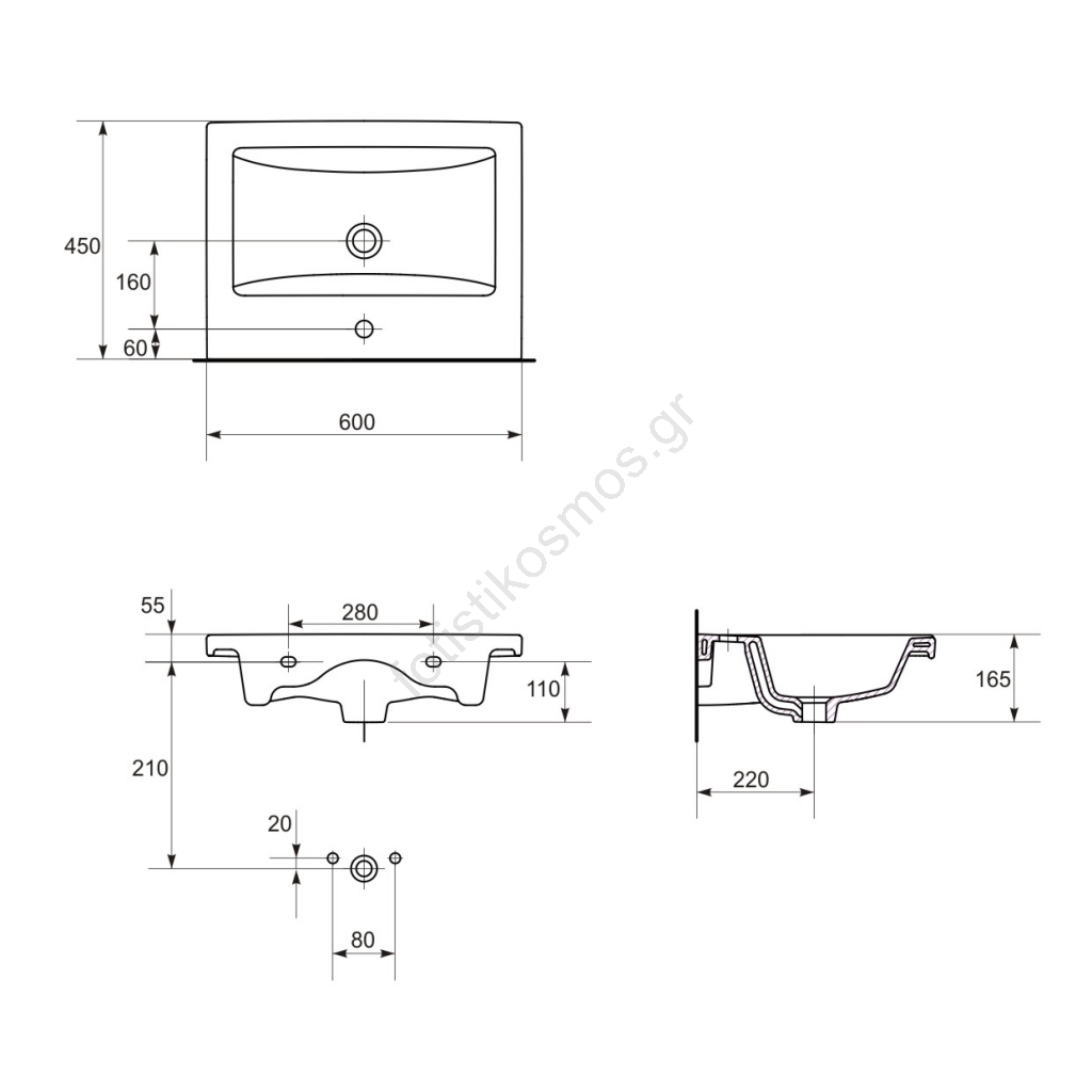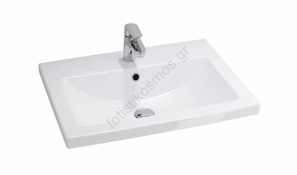 • Ο κεραμικός νιπτήρας έχει κλασικό ορθογώνιο σχήμα με οπή για τη βρύση και υπερχείλιση.