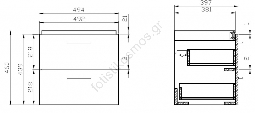 • Η ντουλάπα διαθέτει δύο ευρύχωρα συρτάρια με μηχανισμό αθόρυβου κλεισίματος και χρωμιωμένες λαβές.