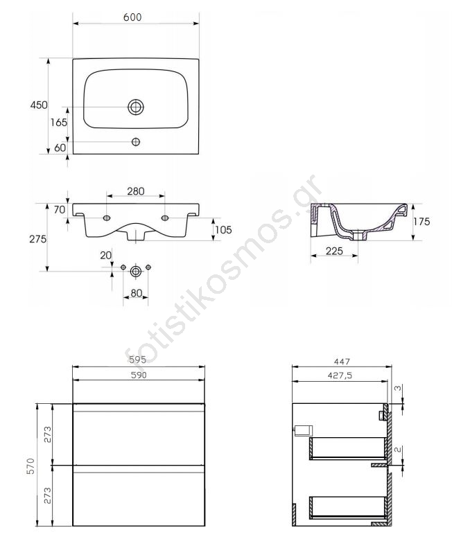 • Ο κεραμικός νιπτήρας έχει κλασικό ορθογώνιο σχήμα με οπή για τη βρύση και υπερχείλιση.