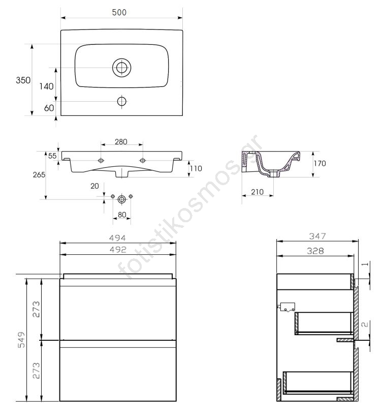• Ο κεραμικός νιπτήρας έχει κλασικό ορθογώνιο σχήμα με οπή για τη βρύση και υπερχείλιση.