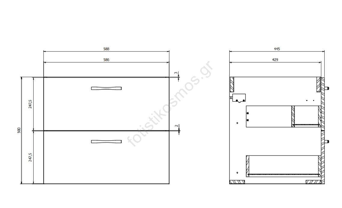 • Το ντουλάπι διαθέτει δύο ευρύχωρα συρτάρια με μηχανισμό μαλακού κλεισίματος.