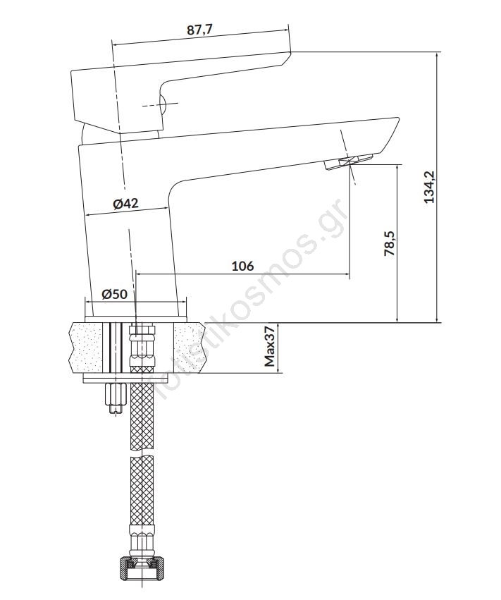 • Μεταλλική βαλβίδα αποστράγγισης με εύκαμπτους σωλήνες σύνδεσης περιλαμβάνεται στη συσκευασία.