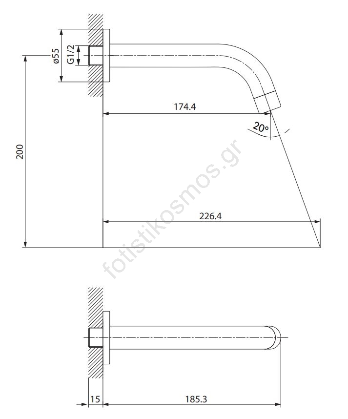 Cersanit S951-554 - Εκροή μπαταρίας εντοιχισμού ZEN μαύρο | Fotisti kosmos