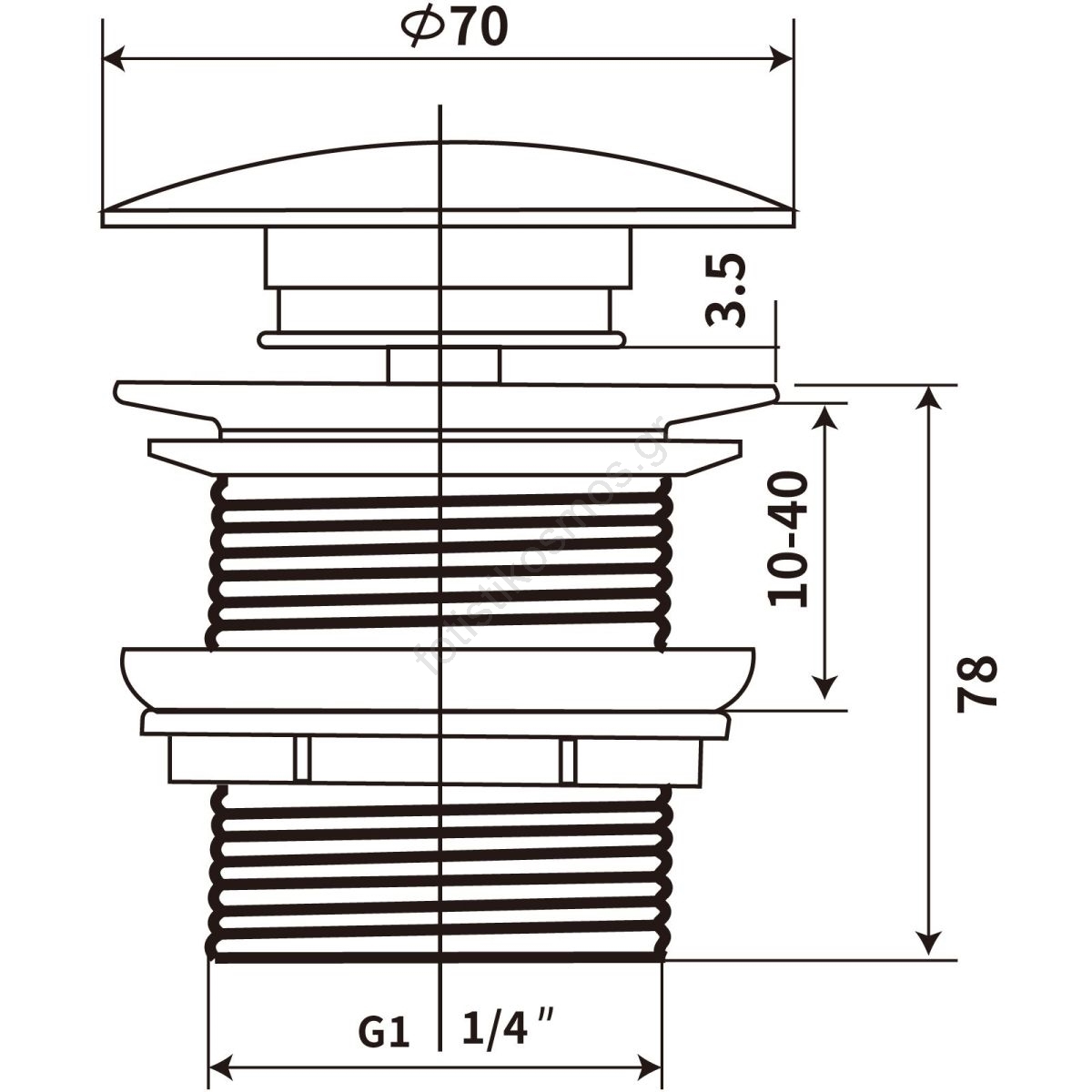 • Μηχανισμός που επιτρέπει εύκολο άνοιγμα και κλείσιμο της αποχέτευσης του νιπτήρα με απλή πίεση του πώματος.