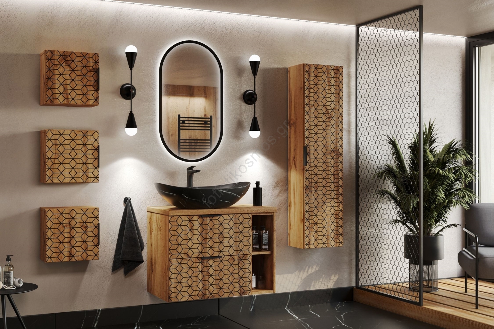• Οβάλ σχήμα και διακόσμηση μαρμάρου.