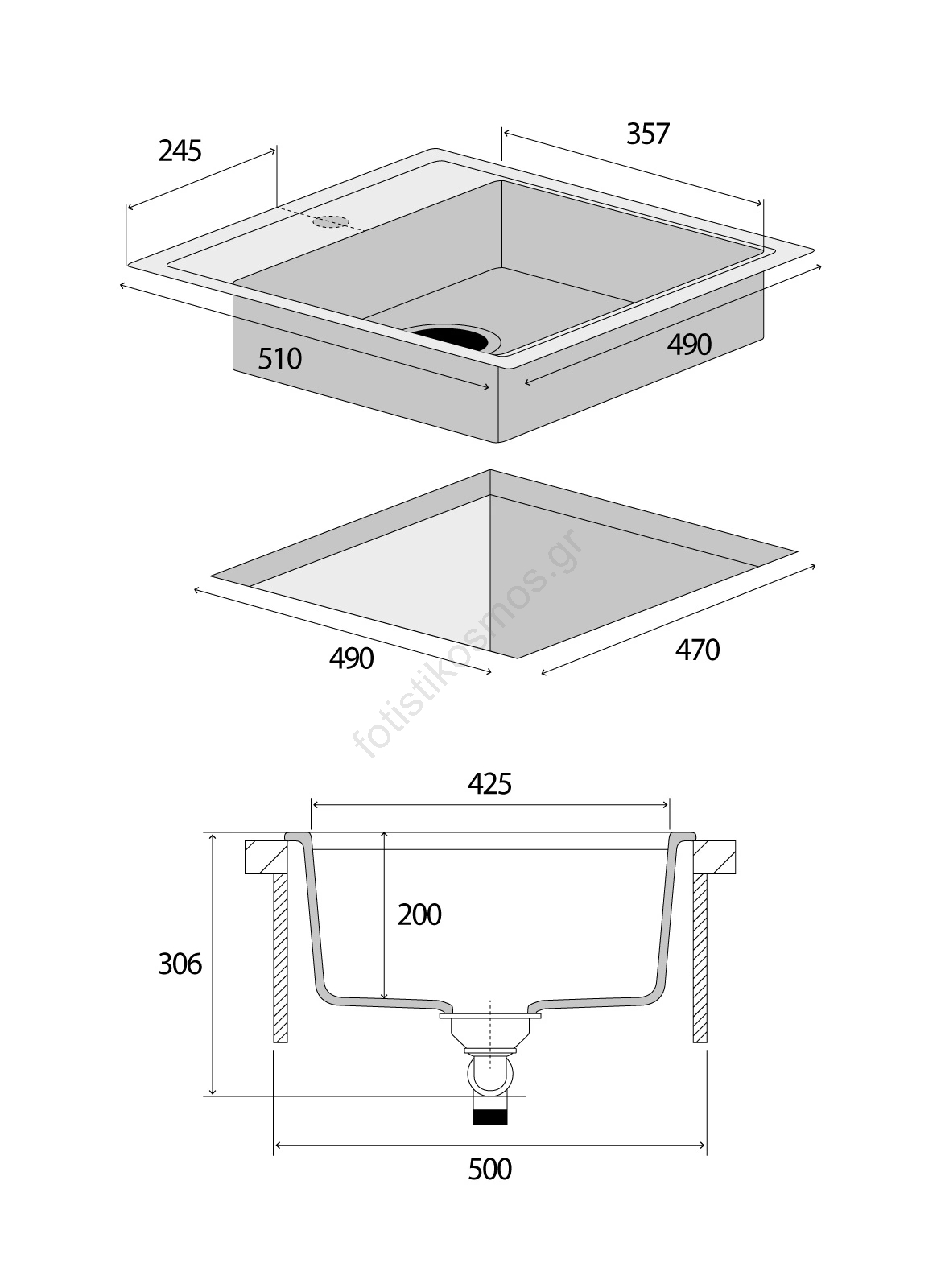 • Διαστάσεις γούρνας (d x š x h): 357 x 425 x 200 mm.