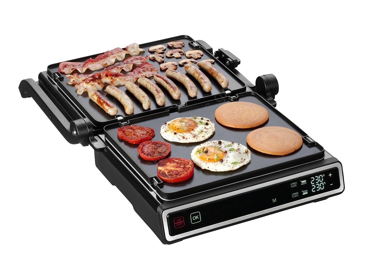 • 11 προεπιλεγμένα προγράμματα: STEAK - MED RARE/MED WELL/MEDIUM/WELL DONE, ΨΑΡΙΑ, ΠΟΥΛΕΡΙΚΑ, ΜΠΕΪΚΟΝ, ΛΑΧΑΝΙΚΑ, ΣΑΝΤΟΥΙΤΣ, ΒΑΦΛΕΣ, DIY (χειροκίνητη ρύθμιση θερμοκρασίας).