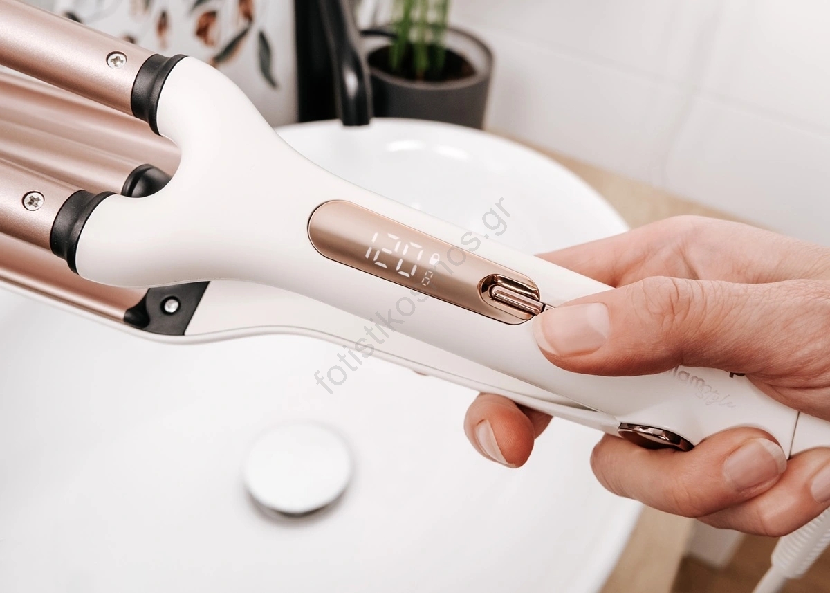 • Το τρικύλινδρο ψαλίδι για μπούκλες με κεραμική επίστρωση είναι ο ιδανικός βοηθός για γρήγορη και εύκολη δημιουργία κομψών κυμάτων.