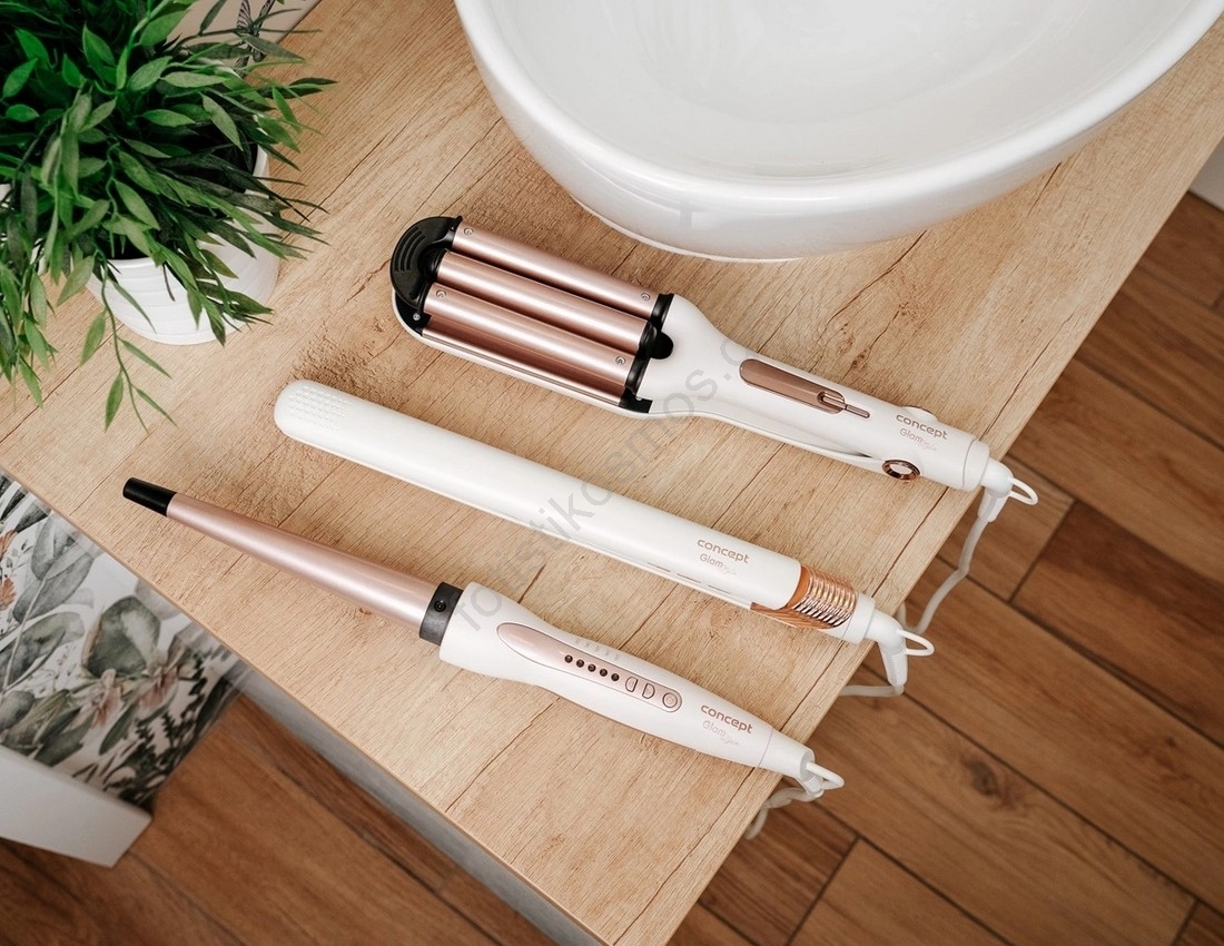 Concept KT2140 - Τριπλό ψαλίδι για μπούκλες GLAM STYLE 100W/230V λευκό/ροζ χρυσό
