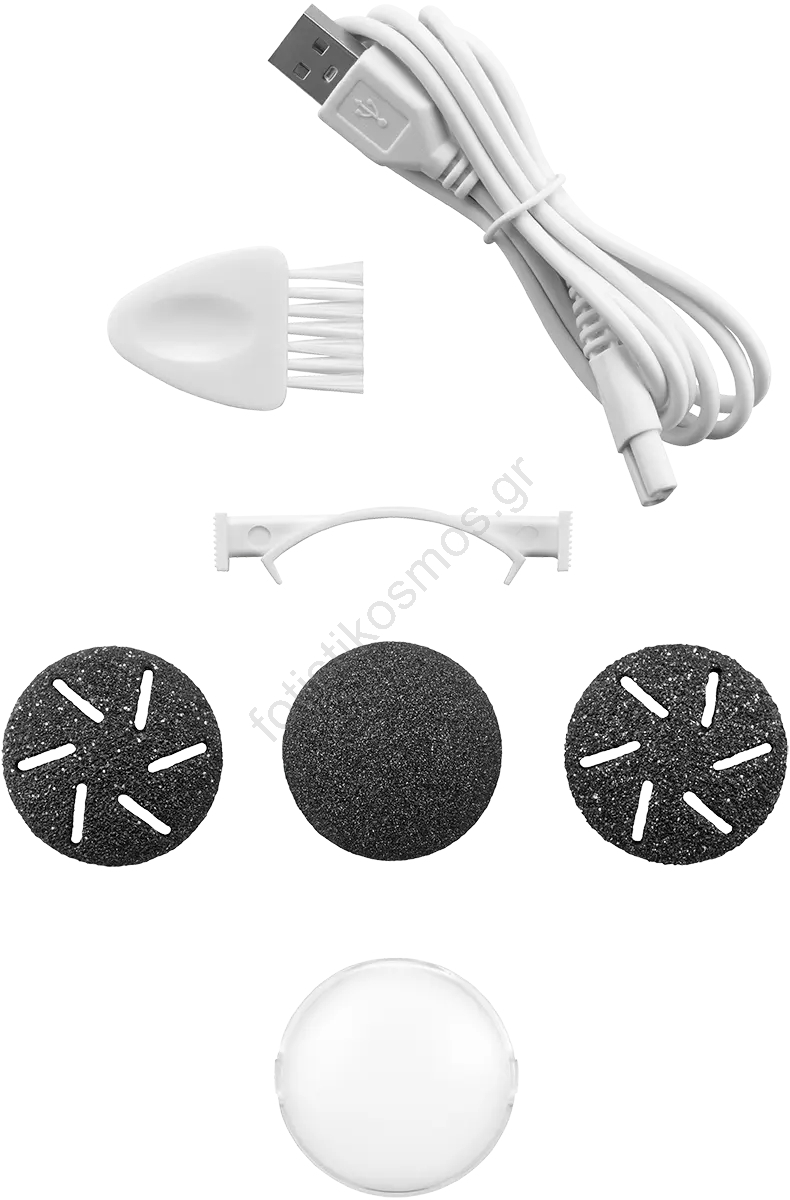 • Εξαρτήματα: 3 ακροφύσια (απαλό, μεσαίο, χοντρό), καλώδιο φόρτισης USB, προστατευτικό κάλυμμα, βουρτσάκι καθαρισμού.