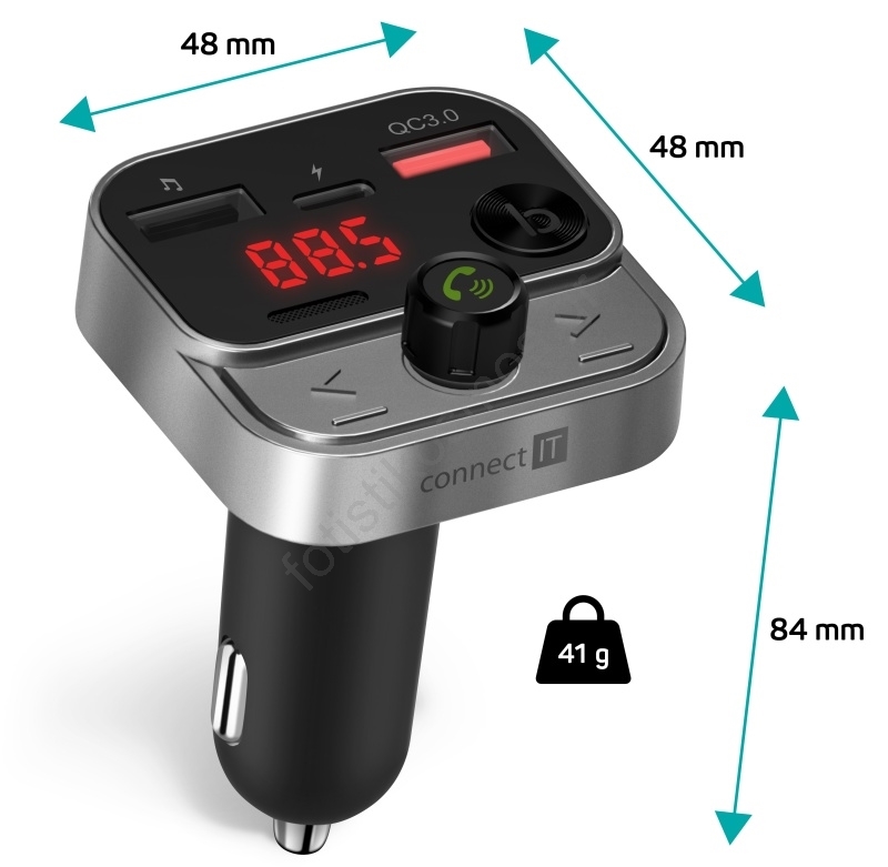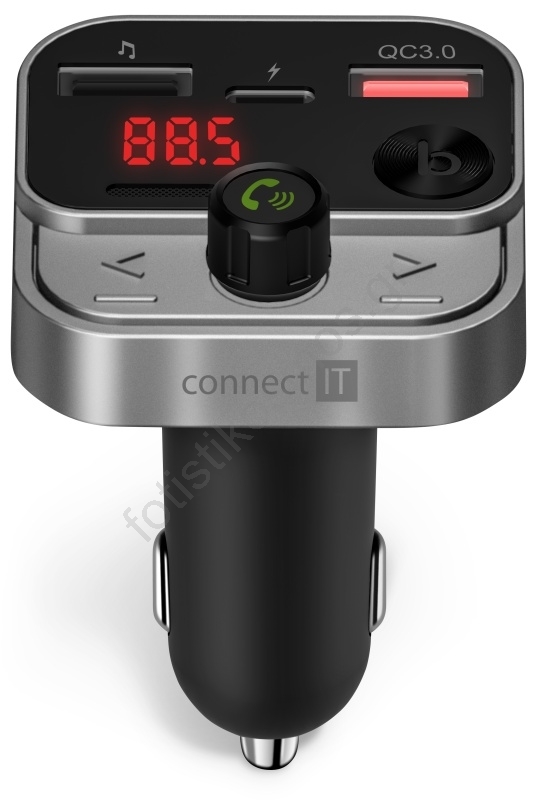• Πομπός FM που συνδυάζει τρεις συσκευές σε μία - φορτιστής 1x USB-C και 2x USB-A με λειτουργία γρήγορης φόρτισης Quick Charge 3.0, ασύρματο Bluetooth handsfree και μουσικό αναπαραγωγέα.