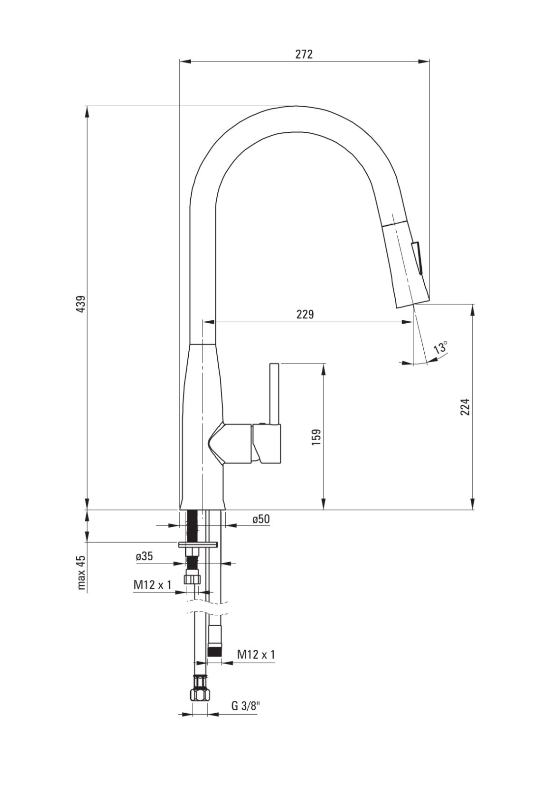 Deante BDH_072M - Μπαταρία κουζίνας με ντους LUKRECJA γυαλιστερό χρώμιο