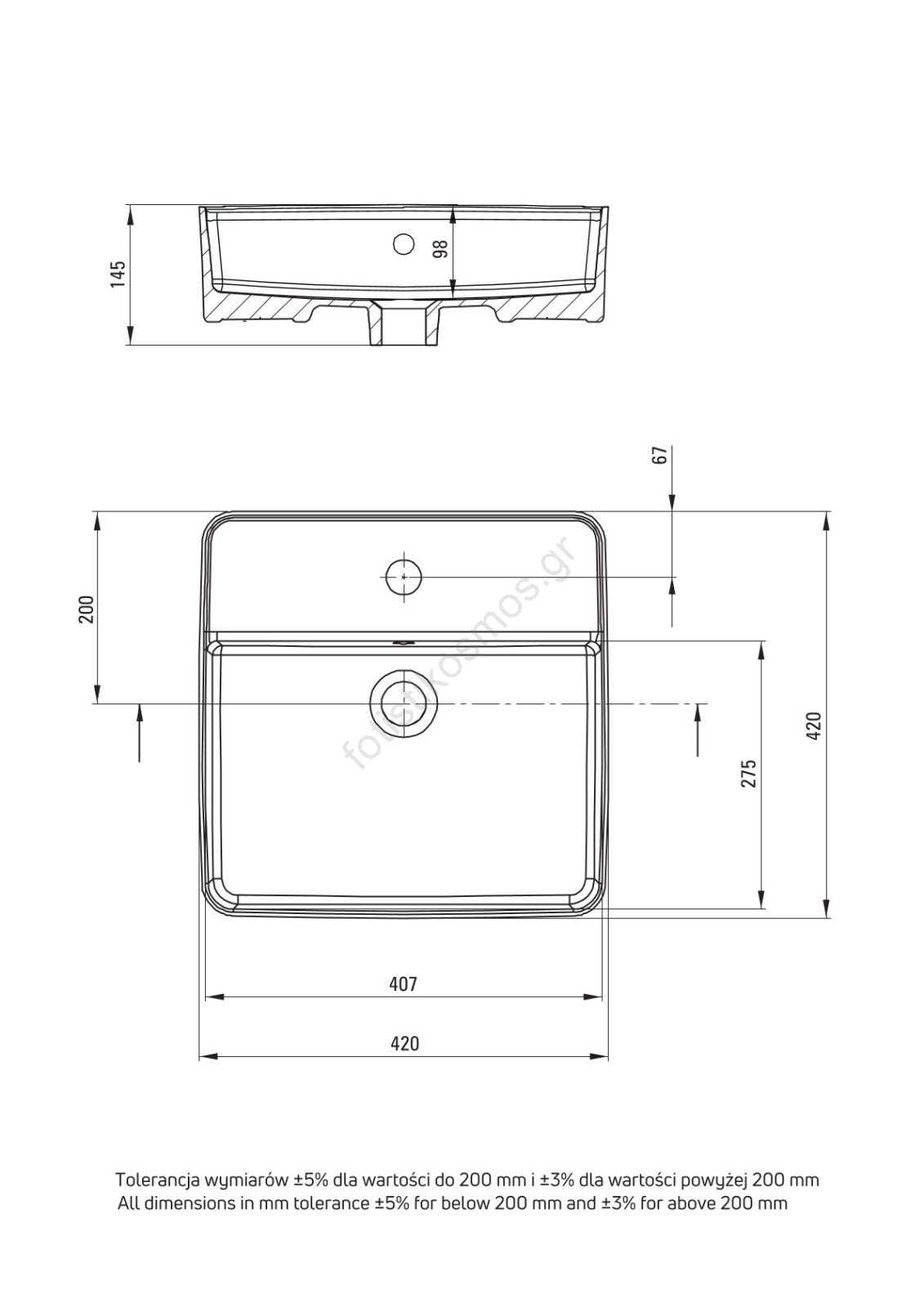 • Ο νιπτήρας προορίζεται για εγκατάσταση πάνω σε πάγκο, προσφέροντας ευελιξία στη θέση και δυνατότητα συνδυασμού με διάφορους τύπους επιφανειών μπάνιου.