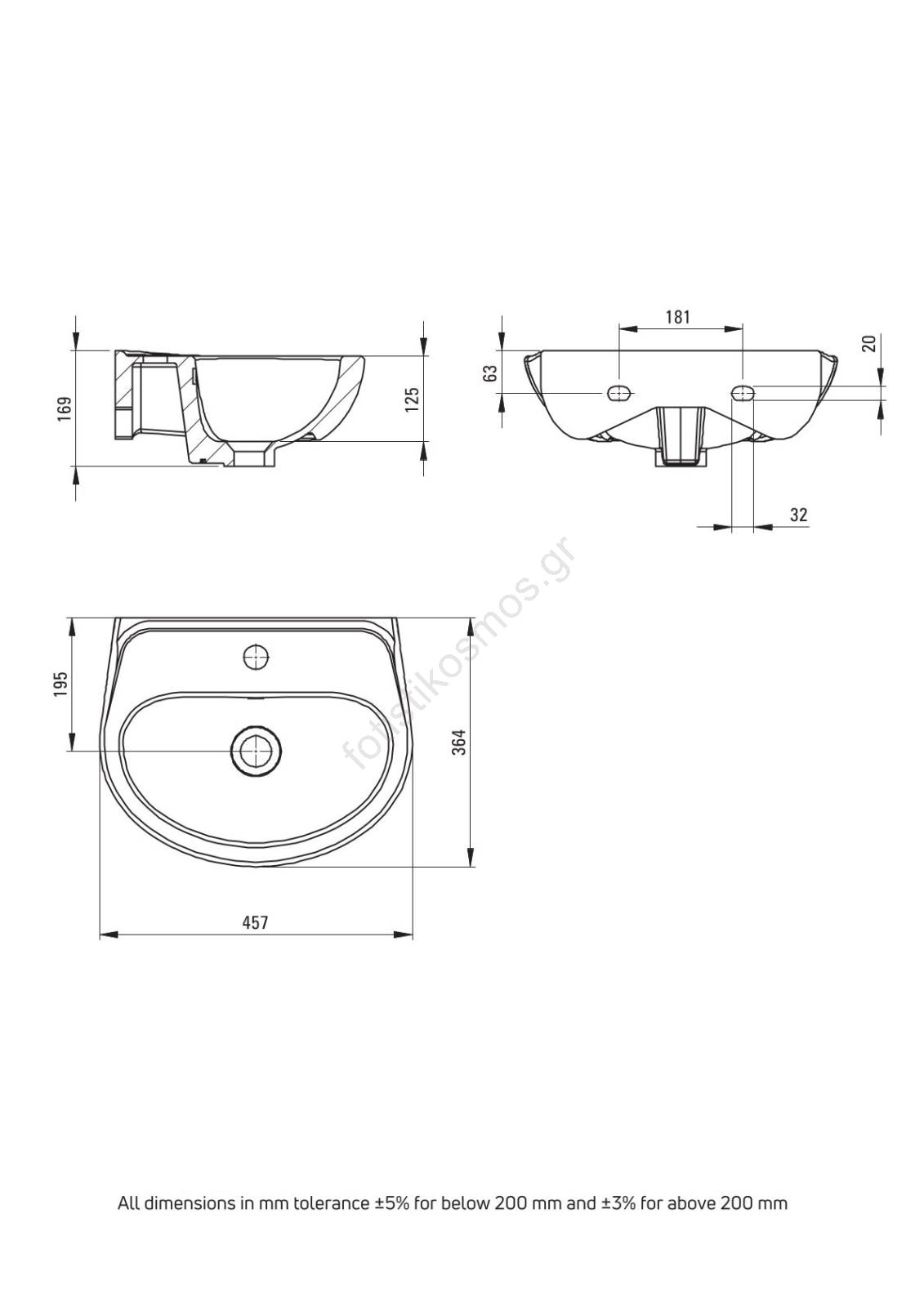 • Ο νιπτήρας είναι κατασκευασμένος από στιβαρή και ανθεκτική κεραμική.