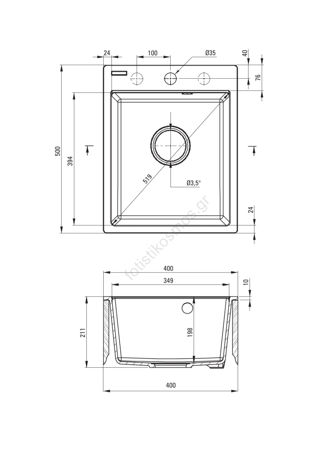 • Ο νεροχύτης τοποθετείται πάνω στον πάγκο εργασίας.